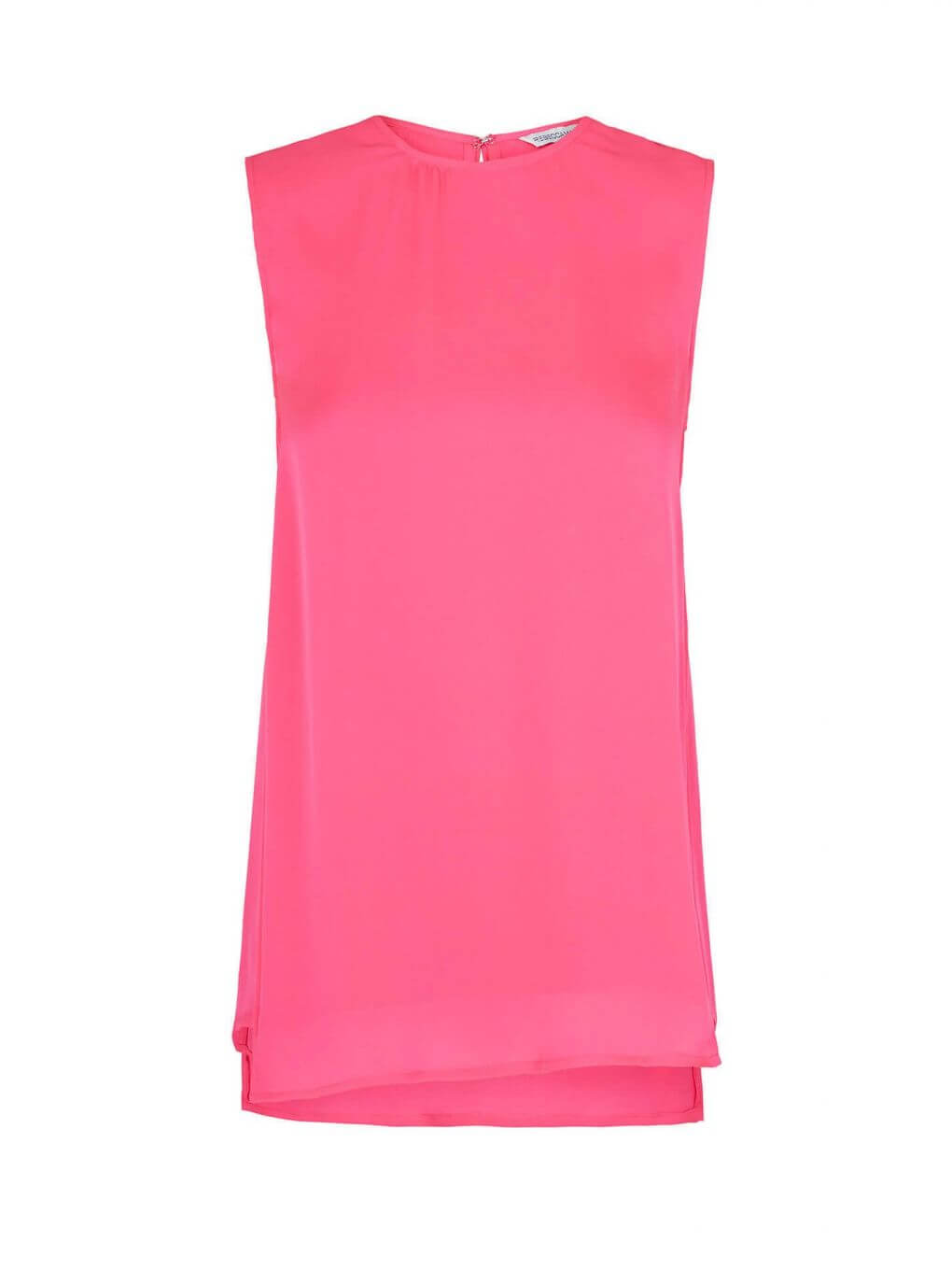 Rebecca Minkoff’s Walter Top is a silk sleeveless crew neck top. This feminine fluoro pink top is accented by back keyhole detail and a concealed snap closure