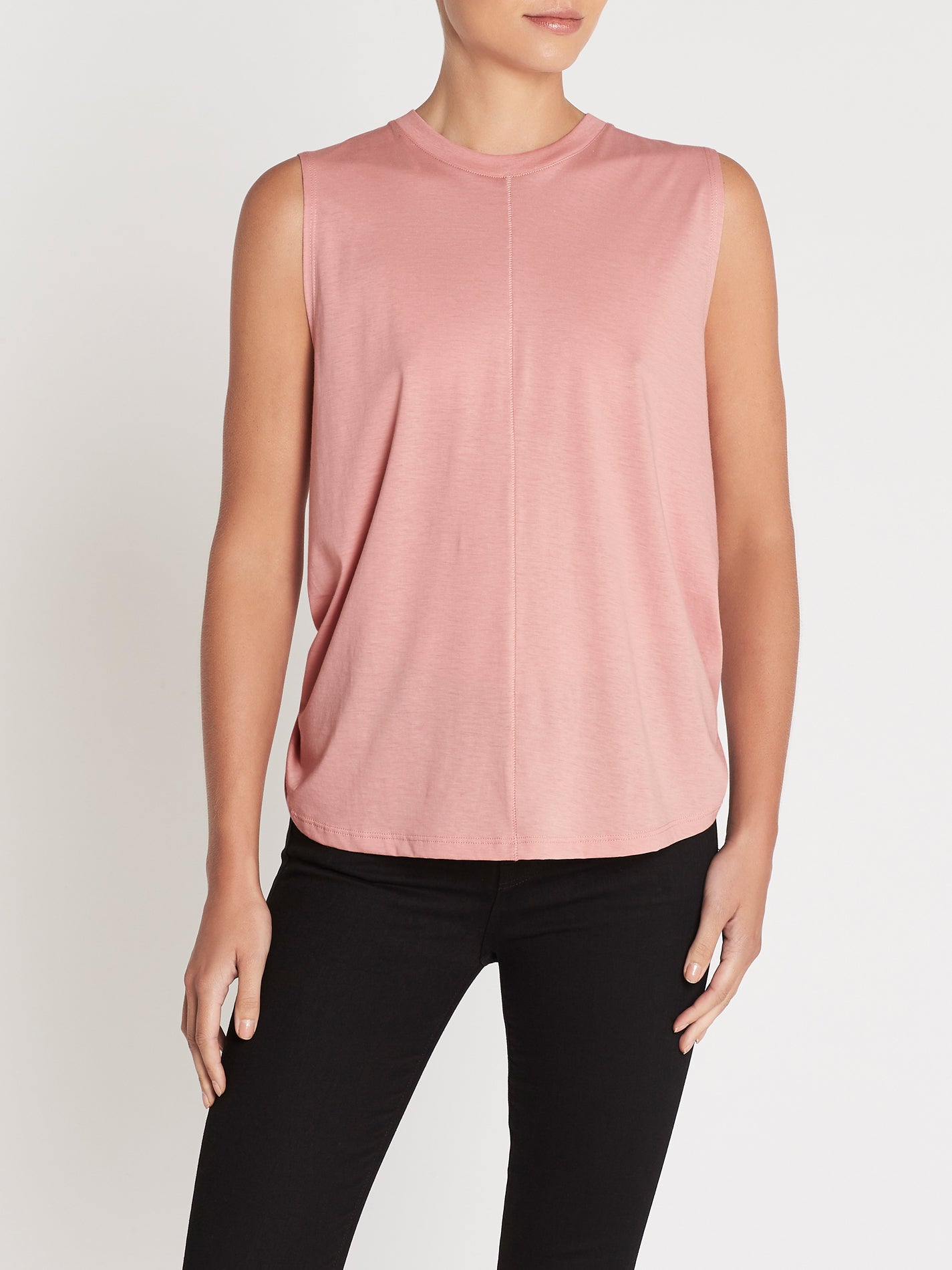 The Current Elliott Pleated Back Muscle Tank in Zephyr is the ultimate classic tank with a cool girl twist. Constructed from 100% cotton in a soft pink hue this sleeveless top features a high rounded neck, centre front seam and is finished with a surprise pleat at the centre back adding volume and shape. Pair yours tucked into your favourite white jeans.