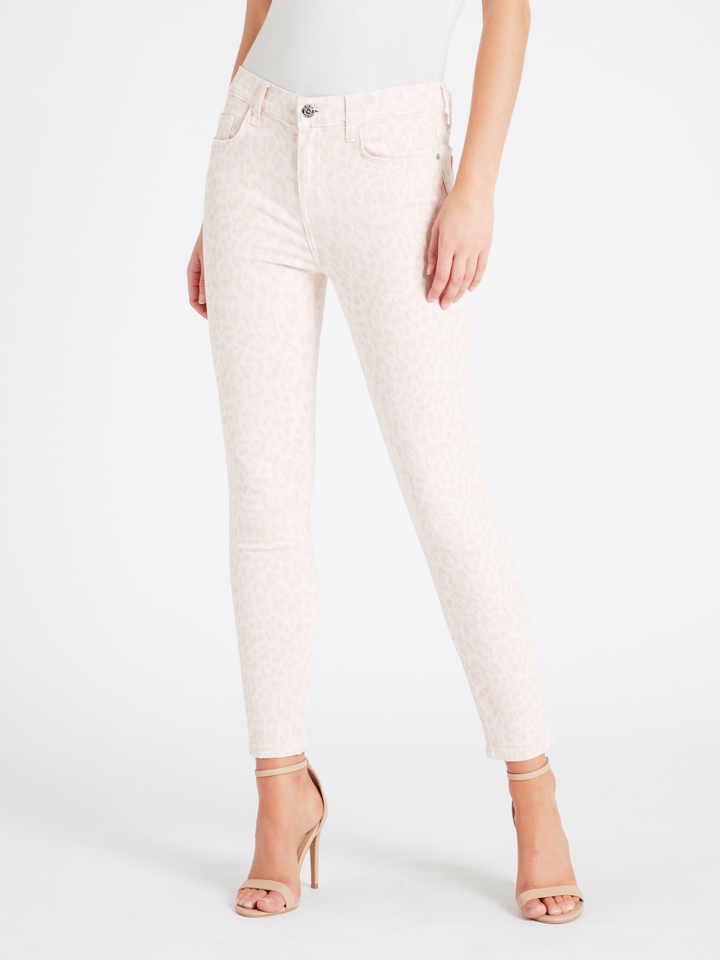 The Current Elliott High Waist Stiletto Jean in Leopard Rose is made from 70% Cotton, 20% Rayon 1% Spandex
