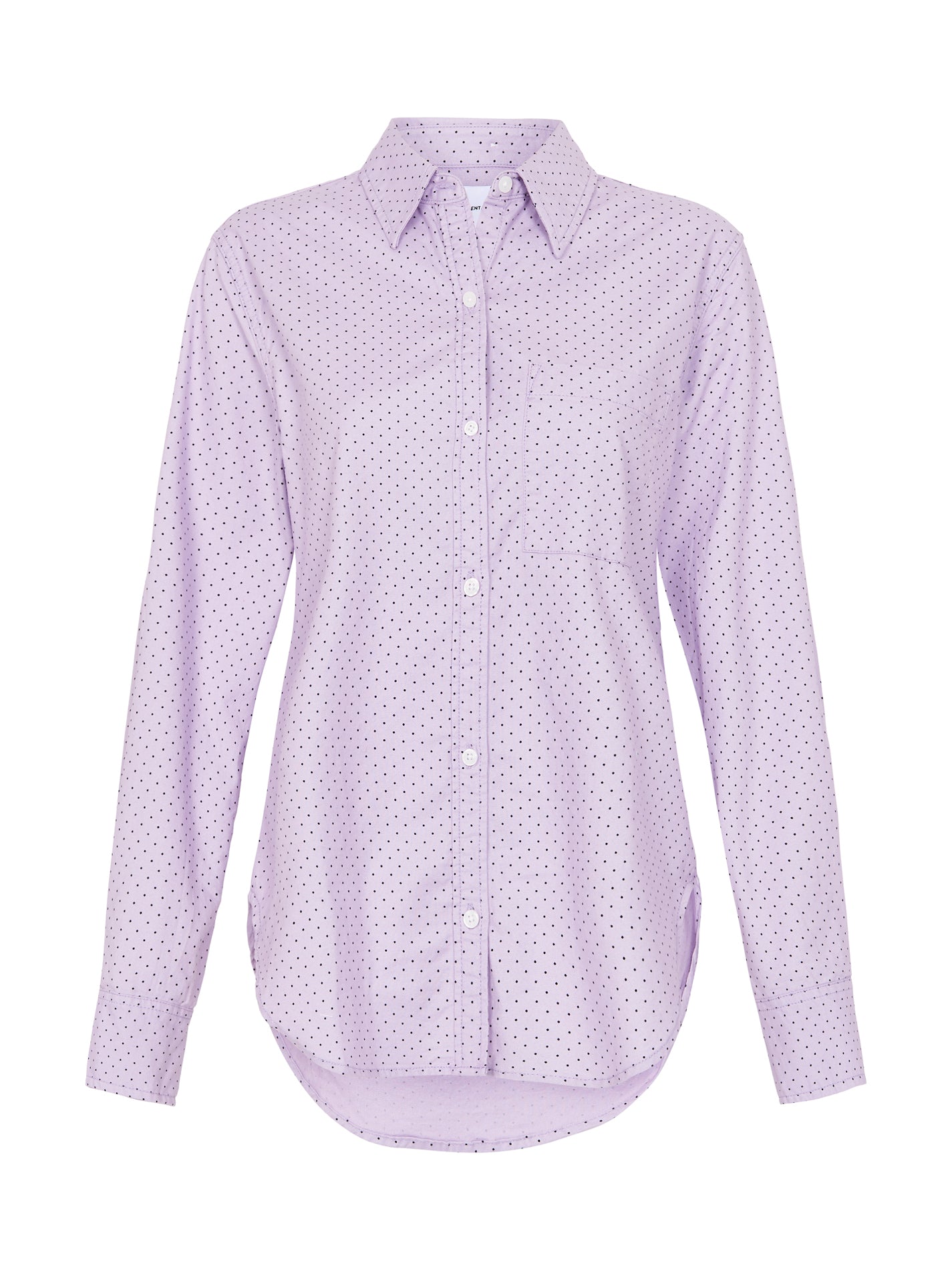 The Current Elliott The Neal Shirt in Orchid Polka Dot is made from 98% Cotton, 2% Spandex