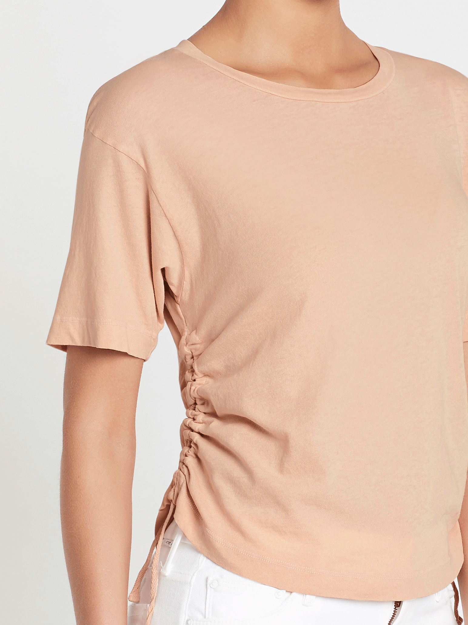 The Sand Trap Tee in Tudor Rose by Current Elliott is an ultra cool and relaxed re-work of a classic style tee. Constructed in ultra soft cotton, this short sleeved boxy cut tee features a round neckline, drop shoulders and ruched side seams and is finished with a cropped length for pairing with high-waist denim in mind. Team yours with your favourite denim for the ultimate weekend relaxed look.
