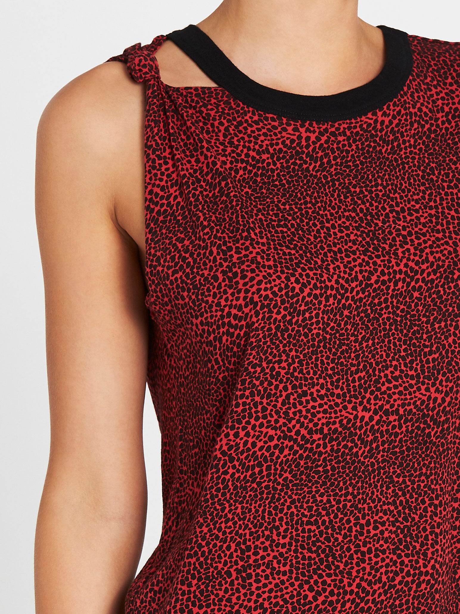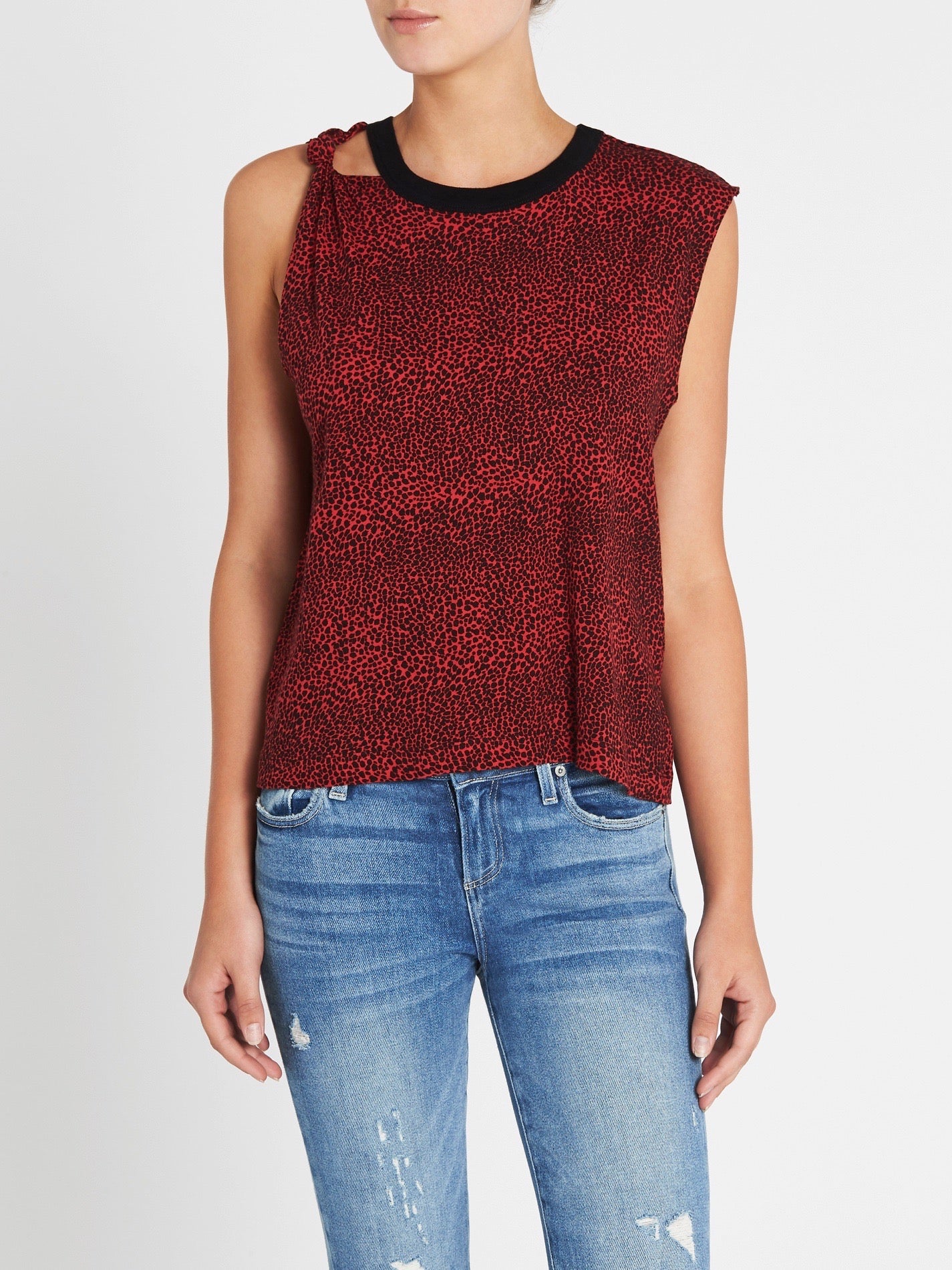 Elevate your off duty style with the Current/Elliott Sonic Tank in Mini Red Leopard. Constructed from a leopard print red cotton this easy to wear tank has a drapey cut and features an asymmetrical knotted detail on the shoulder and a contrasting black neckline.