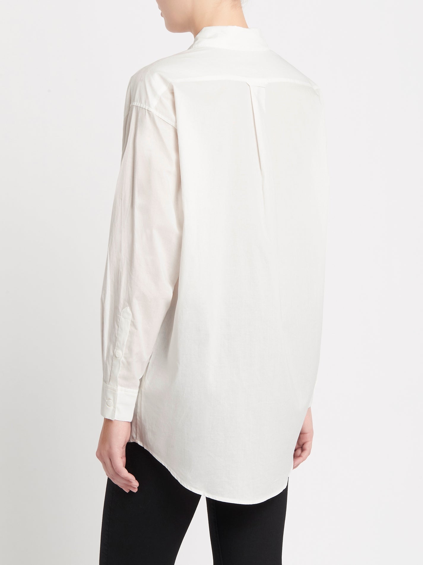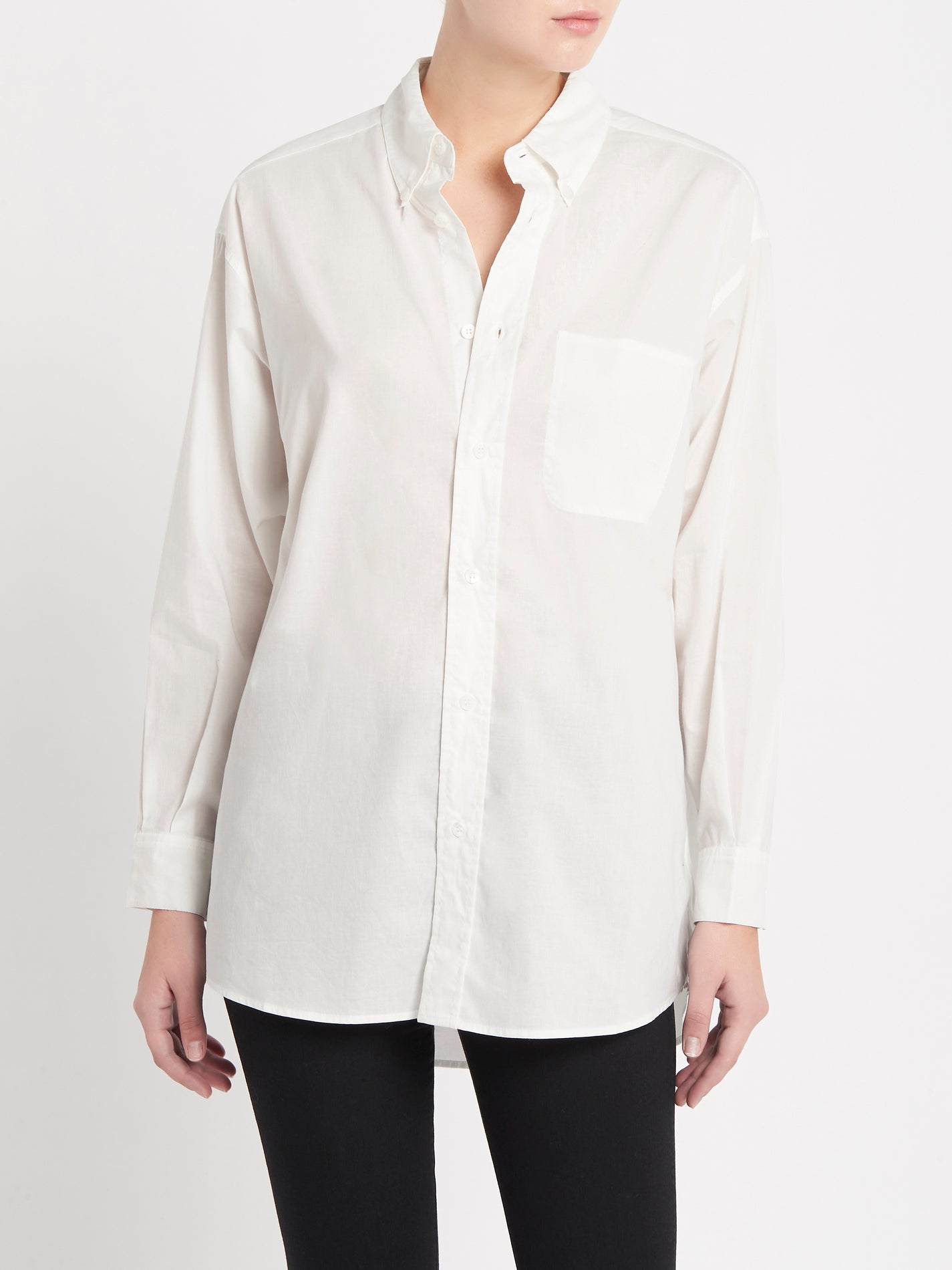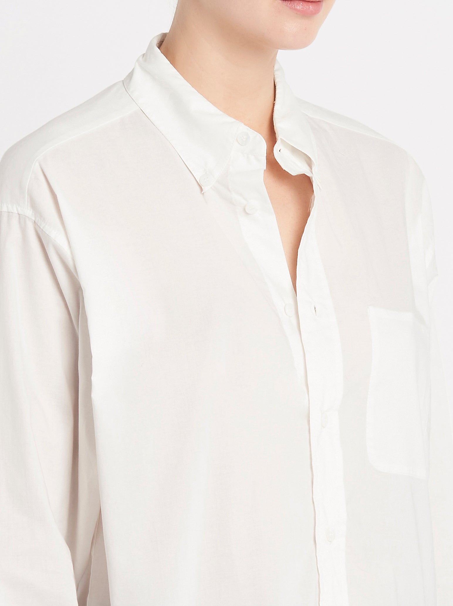The American Vintage cotton Krimcity shirt in white is a must have wardrobe staple. It features a simple and sleek design which hides an inside pocket and its oversized fit makes the shirt for every occasion. Wear it with tailored pants to work, or denim on weekends. Wherever you go, you'll want this shirt with you.