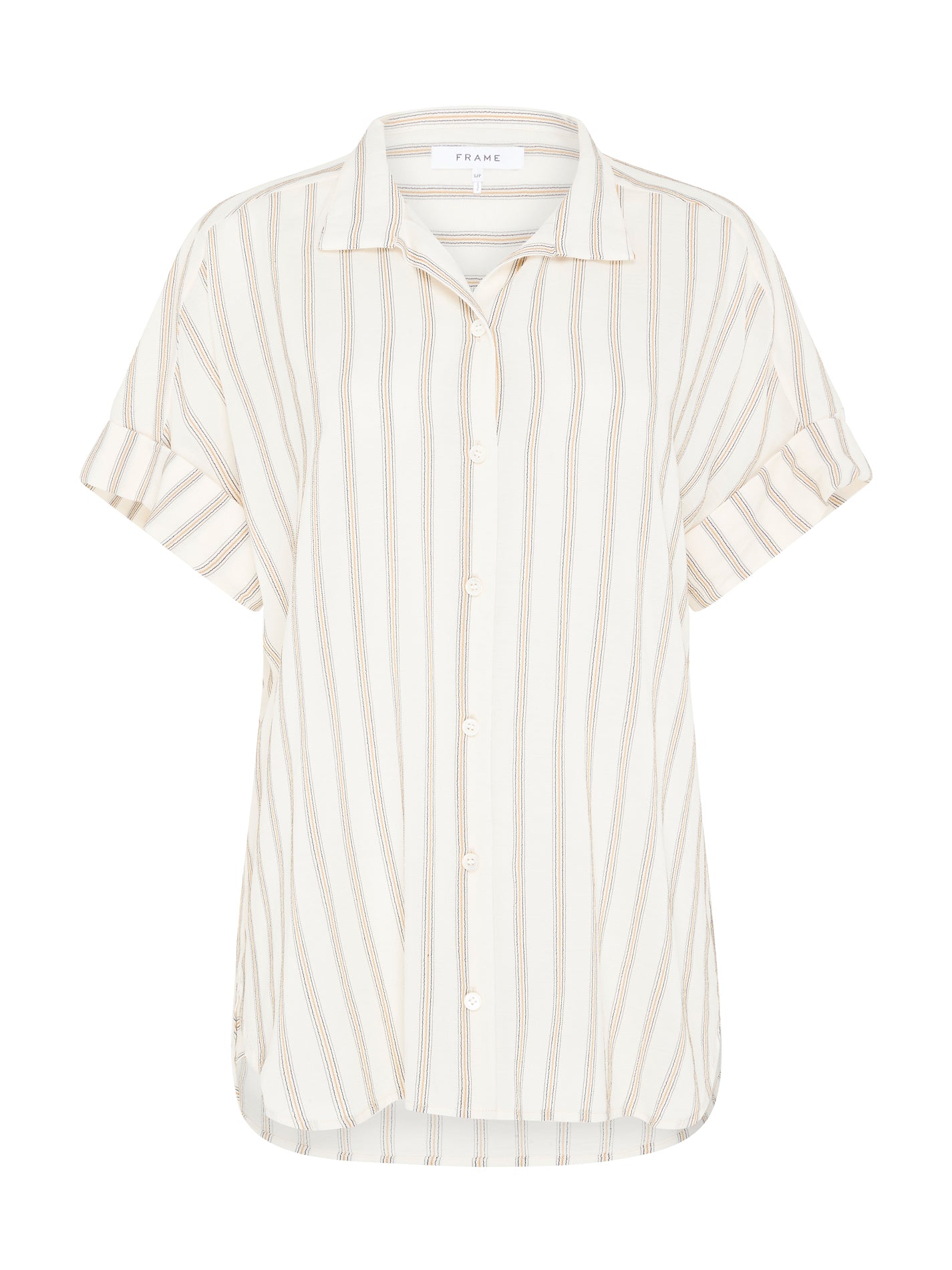 The Frame Clean Collar Short Sleeve Shirt in Off White Multi fits true to size