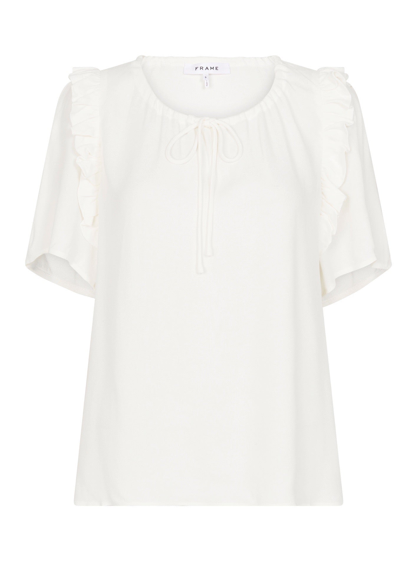The Frame Denim Ruffle Raglan Top in Blanc is made from 100% Viscose