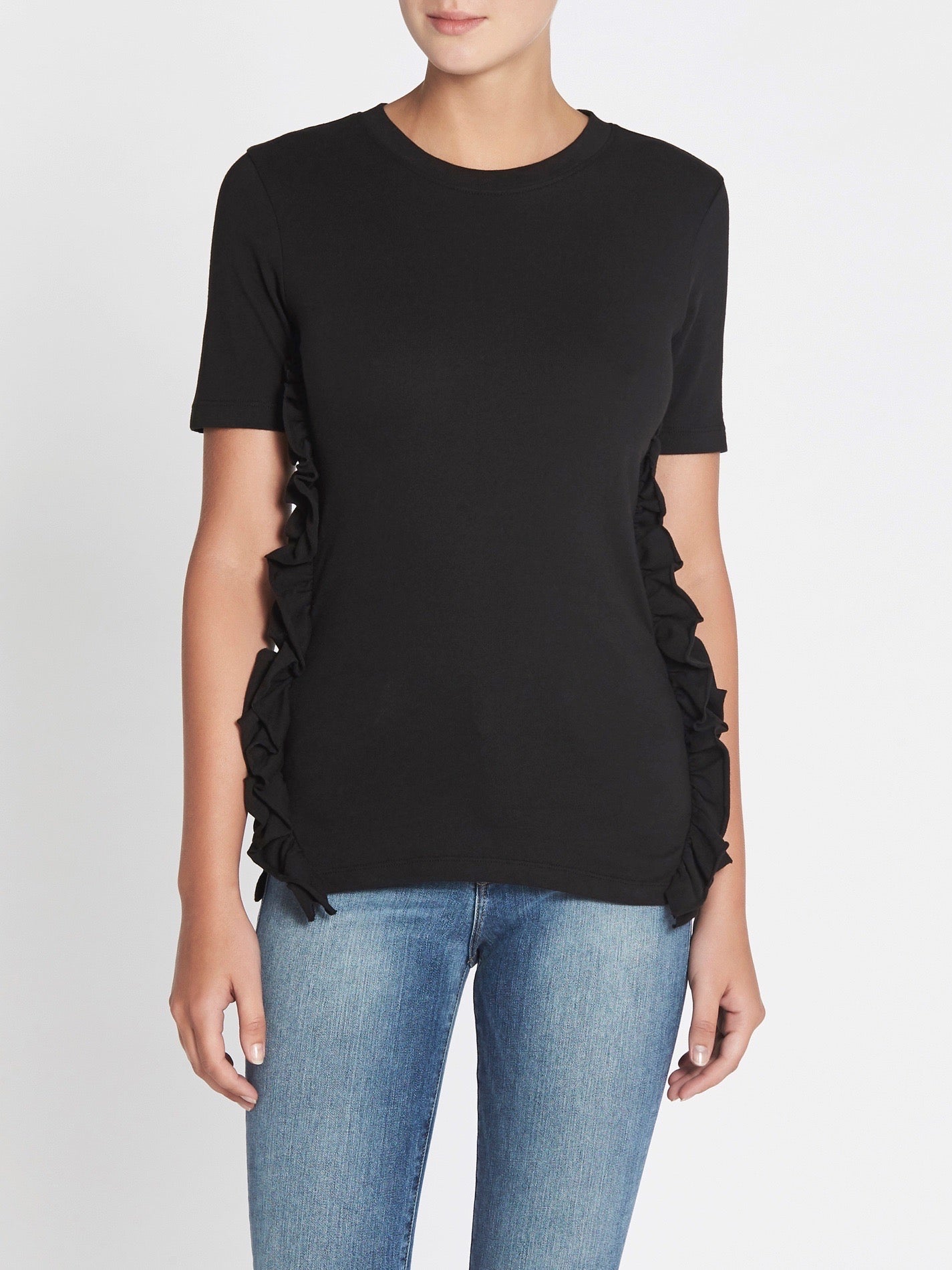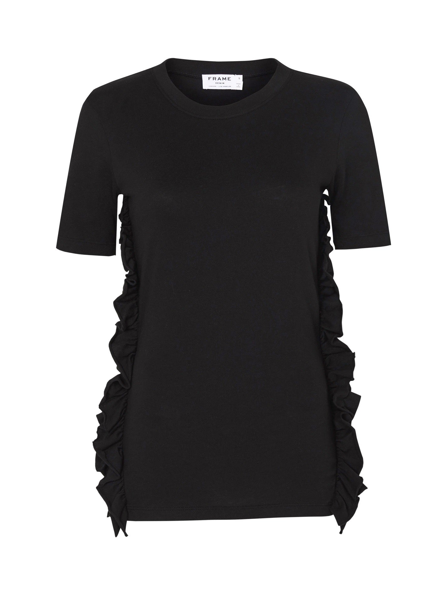 The Frame Denim Ruffle Tee in Noir is made from 100% Cotton