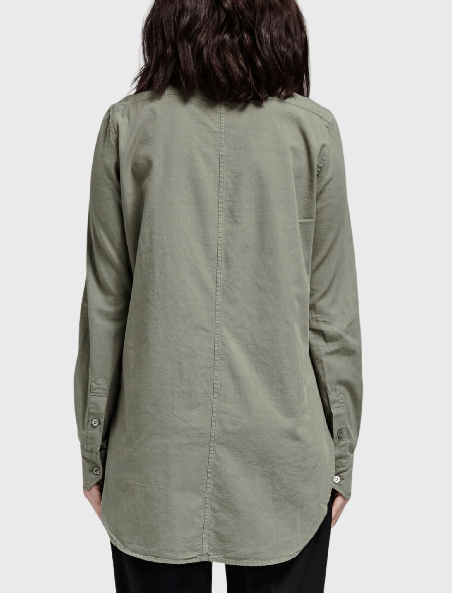 The Frame Denim Le Tunic Shirt in Military is made from 100% Cotton