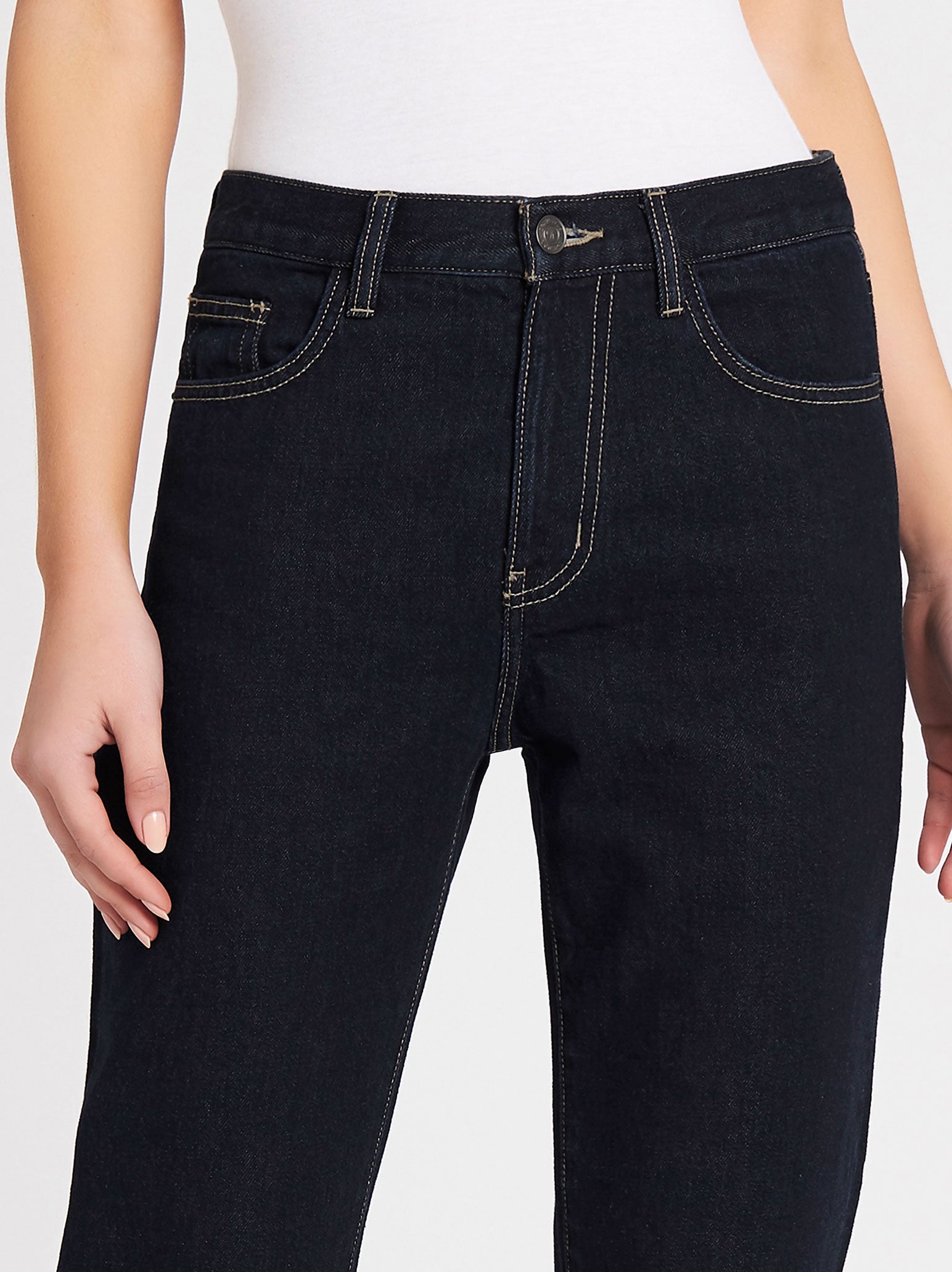 The Current Elliott The Vintage Cropped Slim Jean in Clean Rigid Indigo is made from 100% Cotton