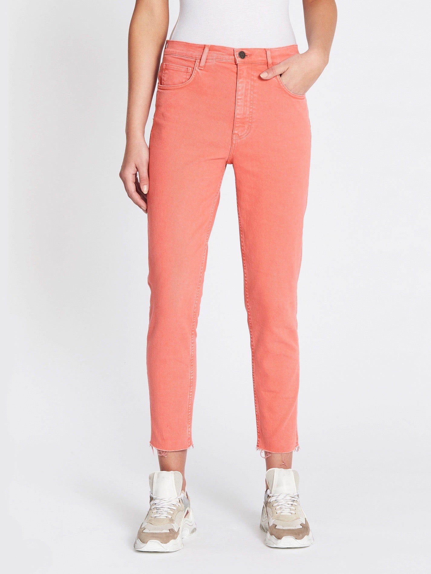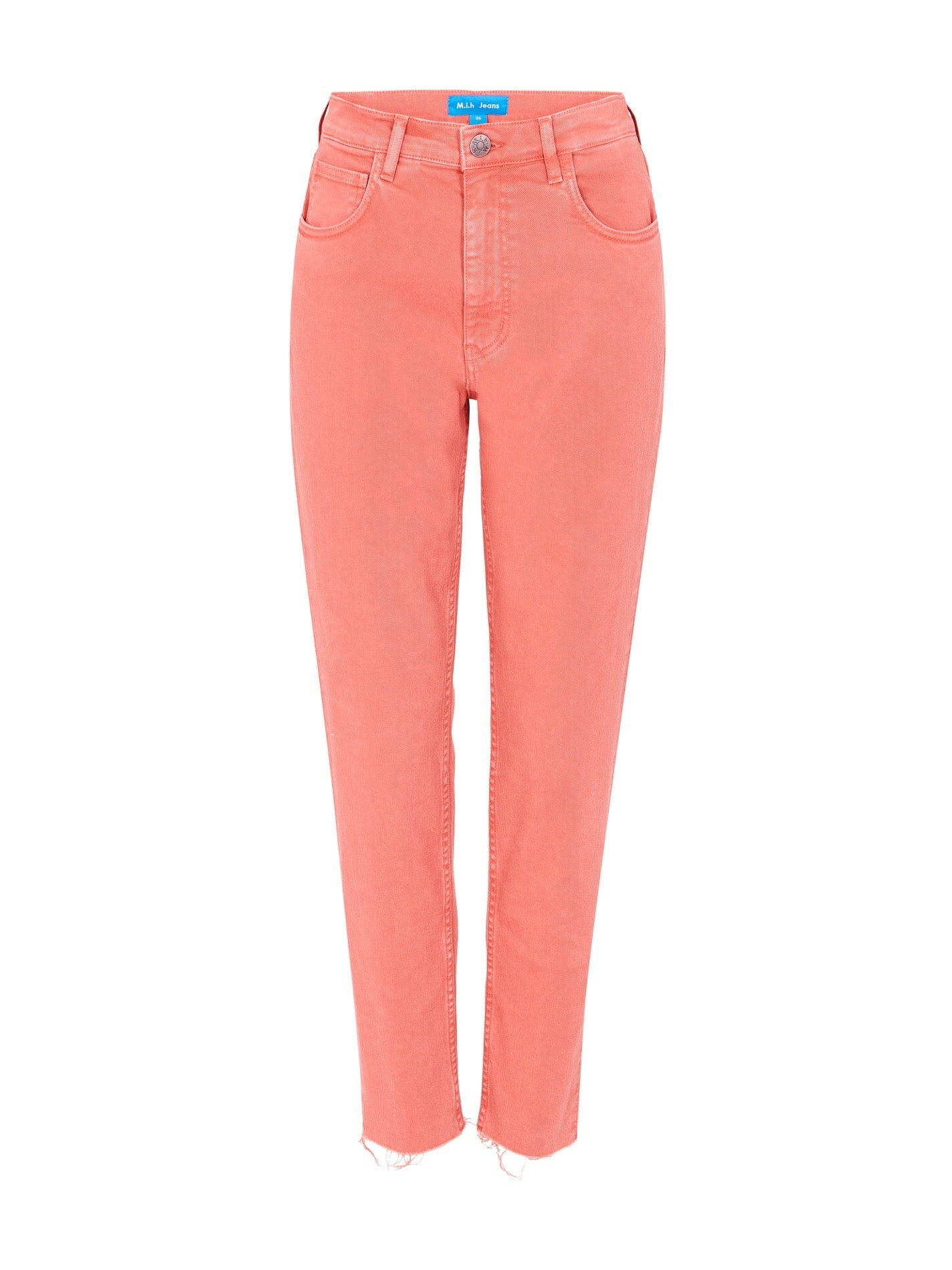A vintage style slim fitting jean, M.i.H Jean's Mimi Jean in the colour Rosa are a slightly cropped cut with frayed cuffs and a high rise of 11 inches.