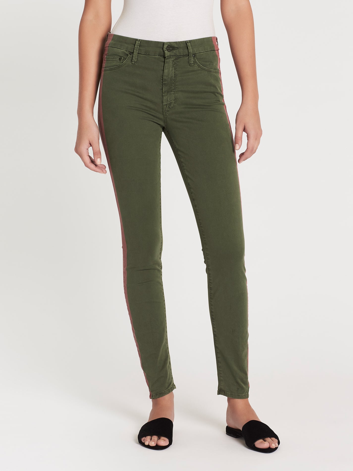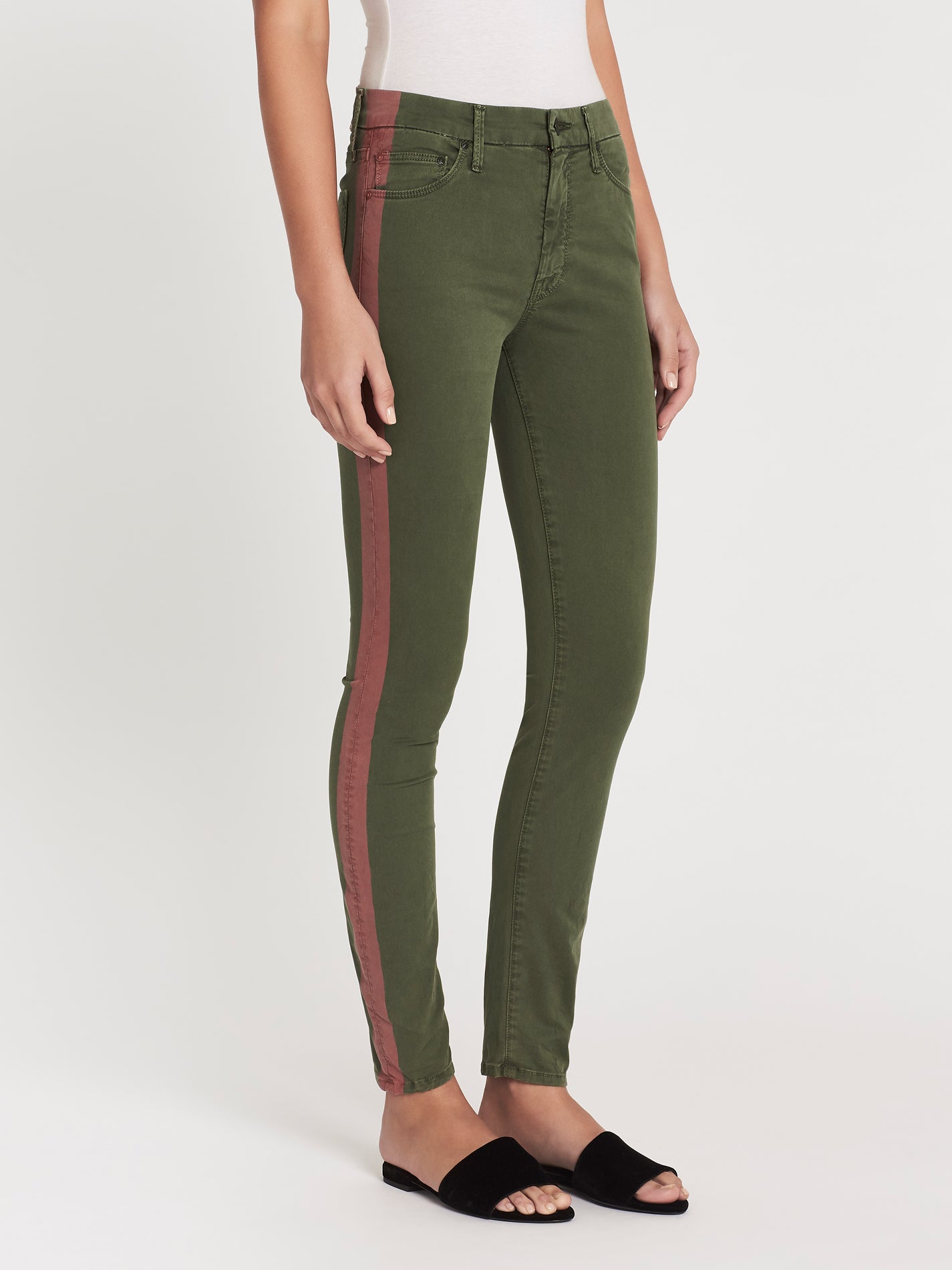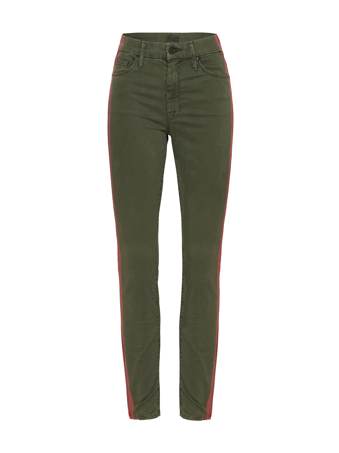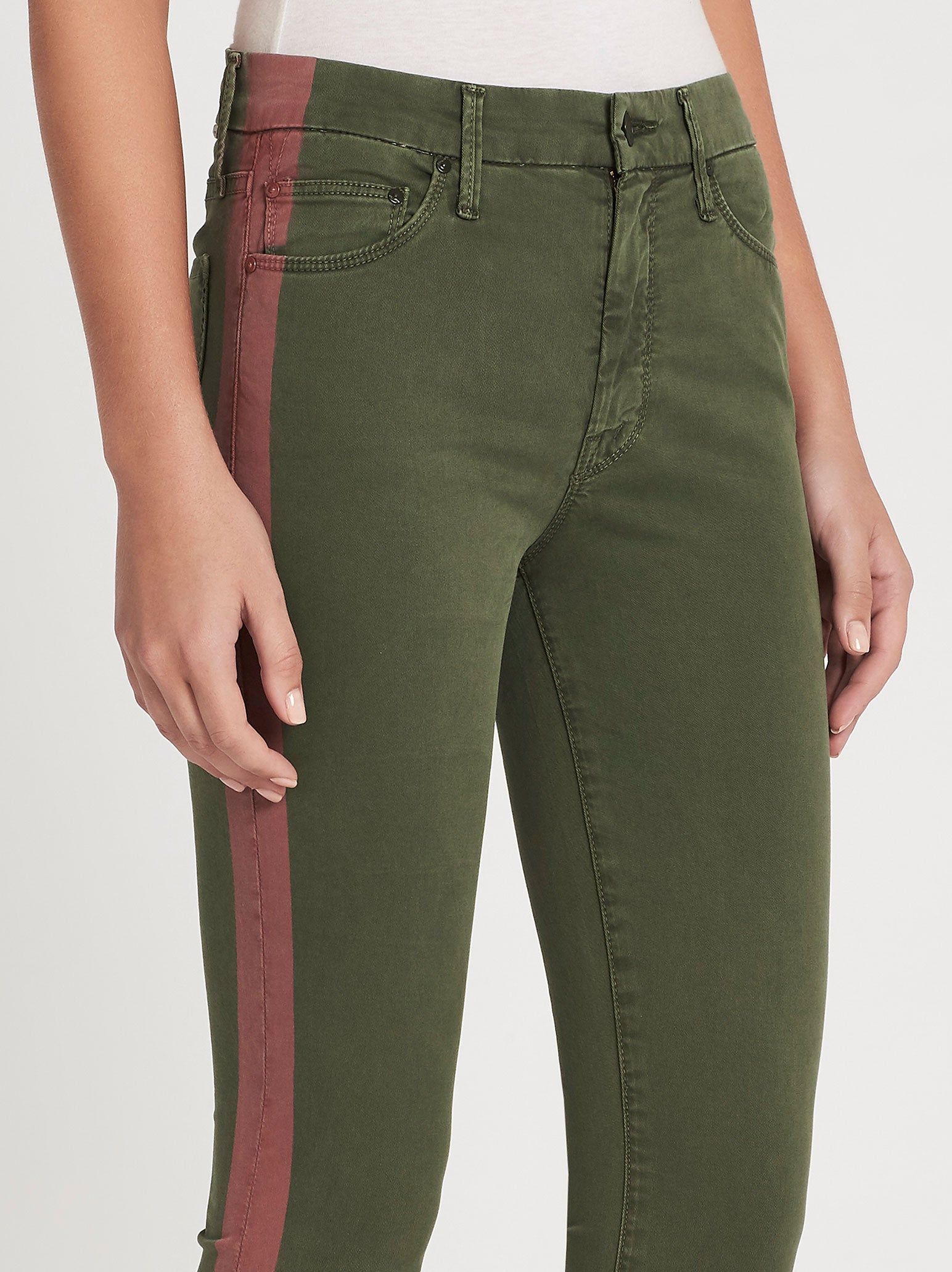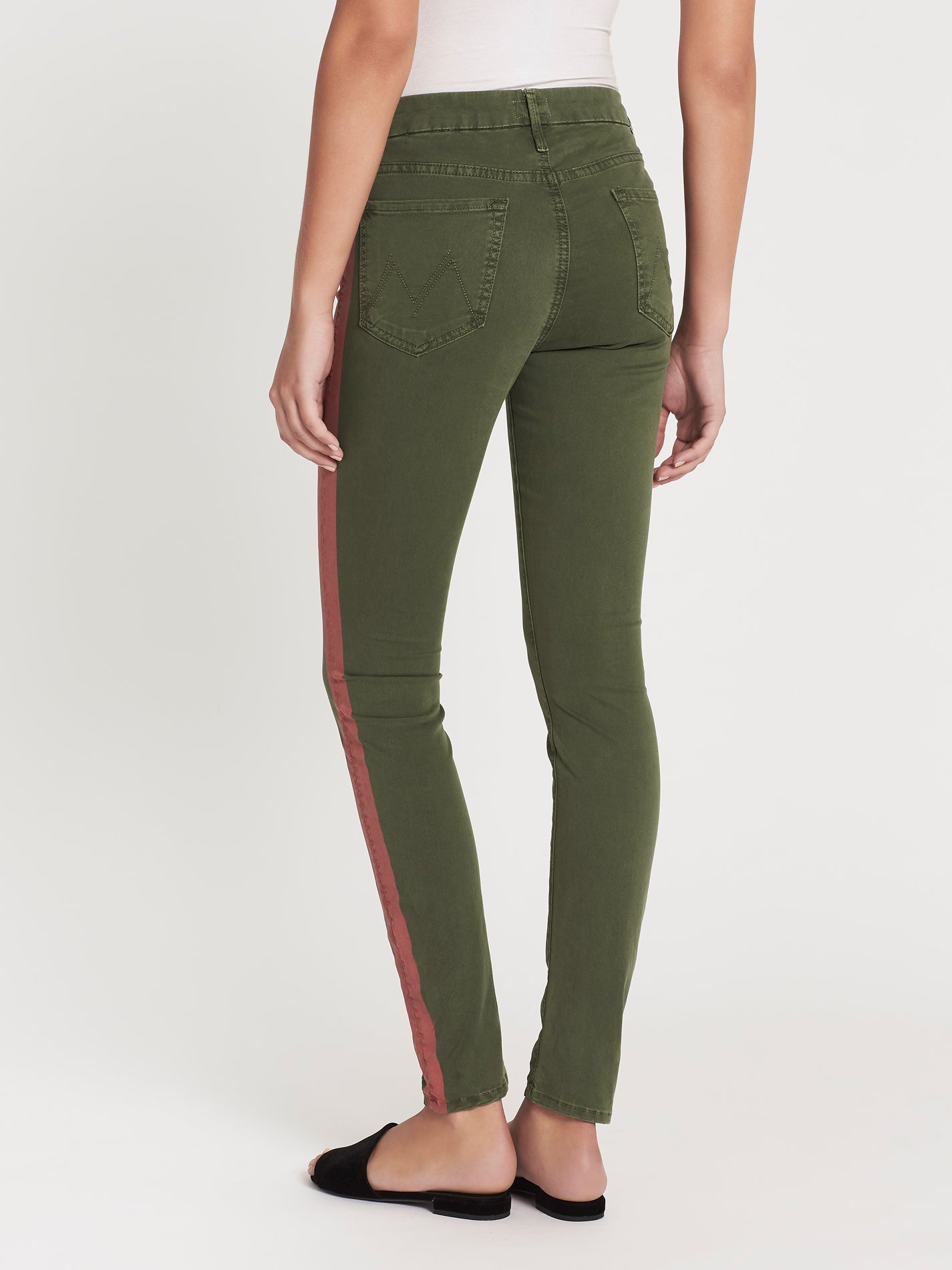 Detailed with a warm toned painted side stripe, Mother Denim's Looker Jean in Fatigue / Red are a the perfect skinny leg jean to add to your collection. Constructed from an army green cotton blend these super comfortable jeans feature a 9.8inch rise, single button zip fly closure and full hem.