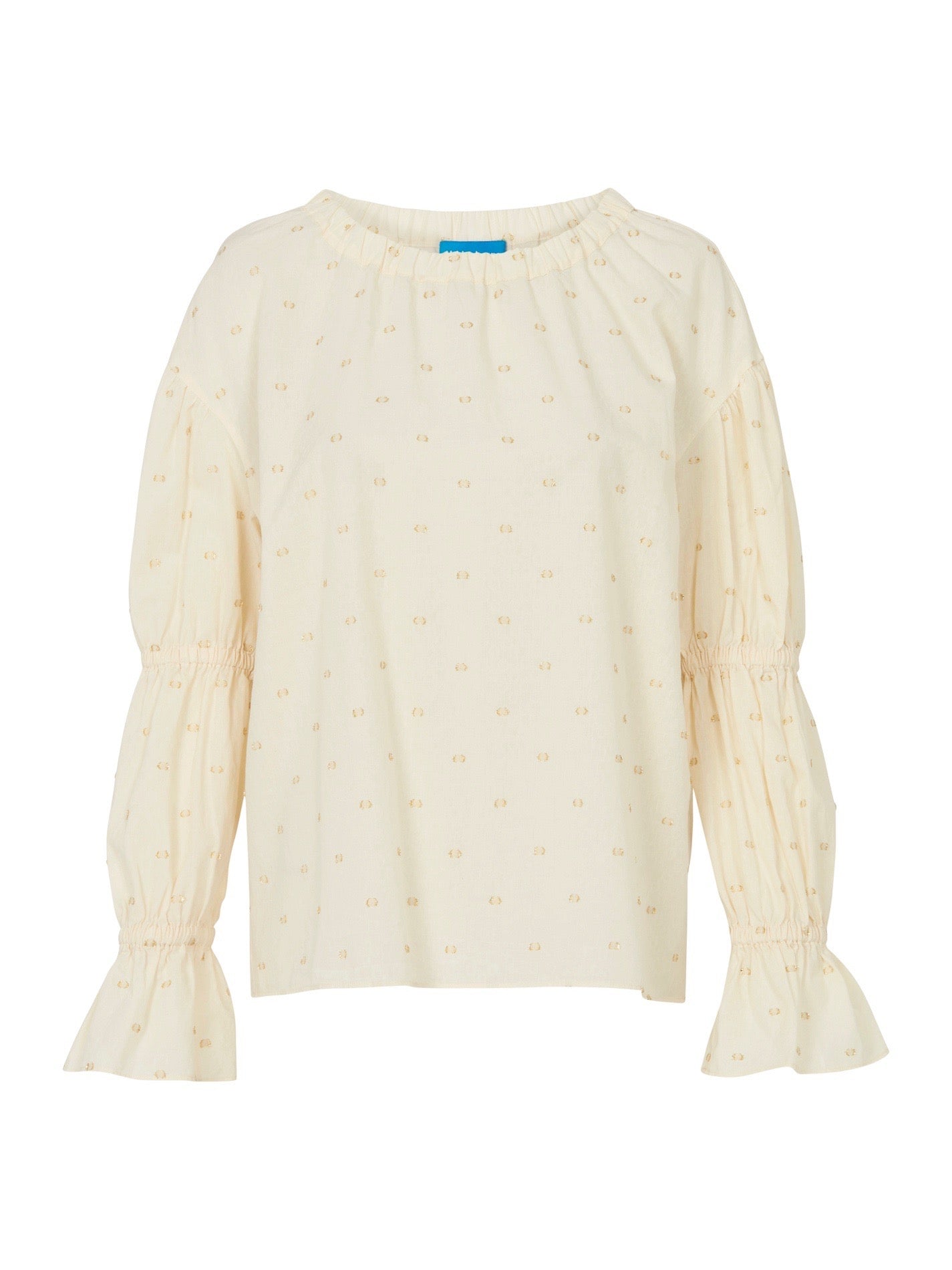 The M.I.H Jeans Bubble Top in Buttermilk is made from 94% Cotton 4% Polyester 2% Polyamide