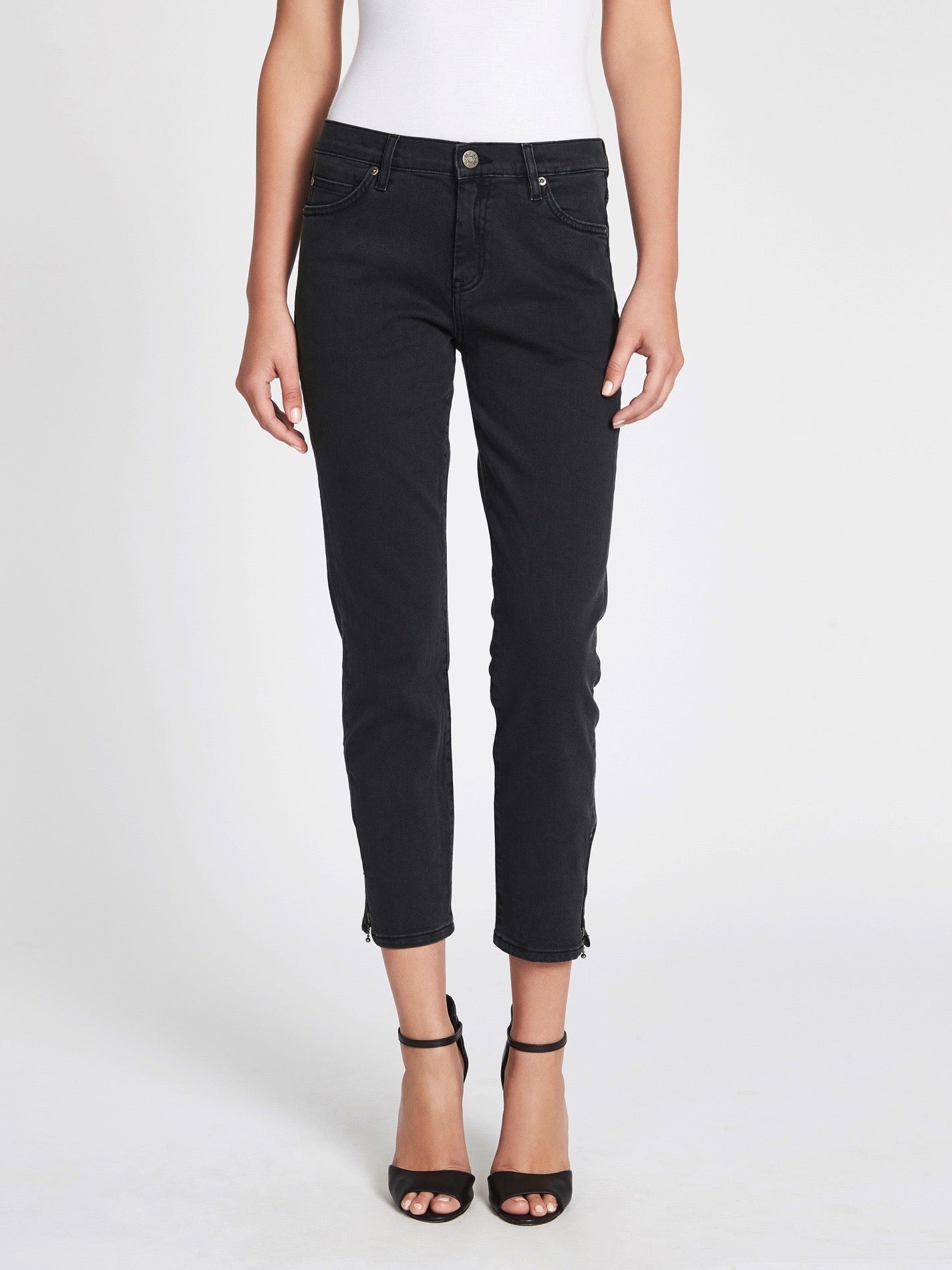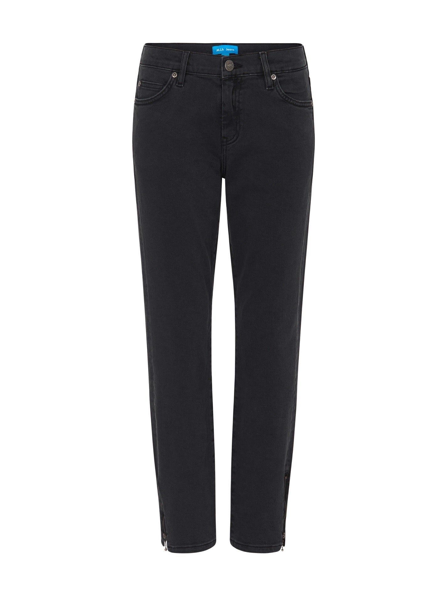 The M.I.H Jean Tomboy Jean is the vintage black wash Weston, is a skinny leg style boyfriend mid rise jean that has the loose ease of your favourite jeans but with a slim fit. These jeans have a traditional 5 pocket constructed and feature a single button zip fly and silver toned ankle zips. Wear yours with a white tee for easy off duty style.
