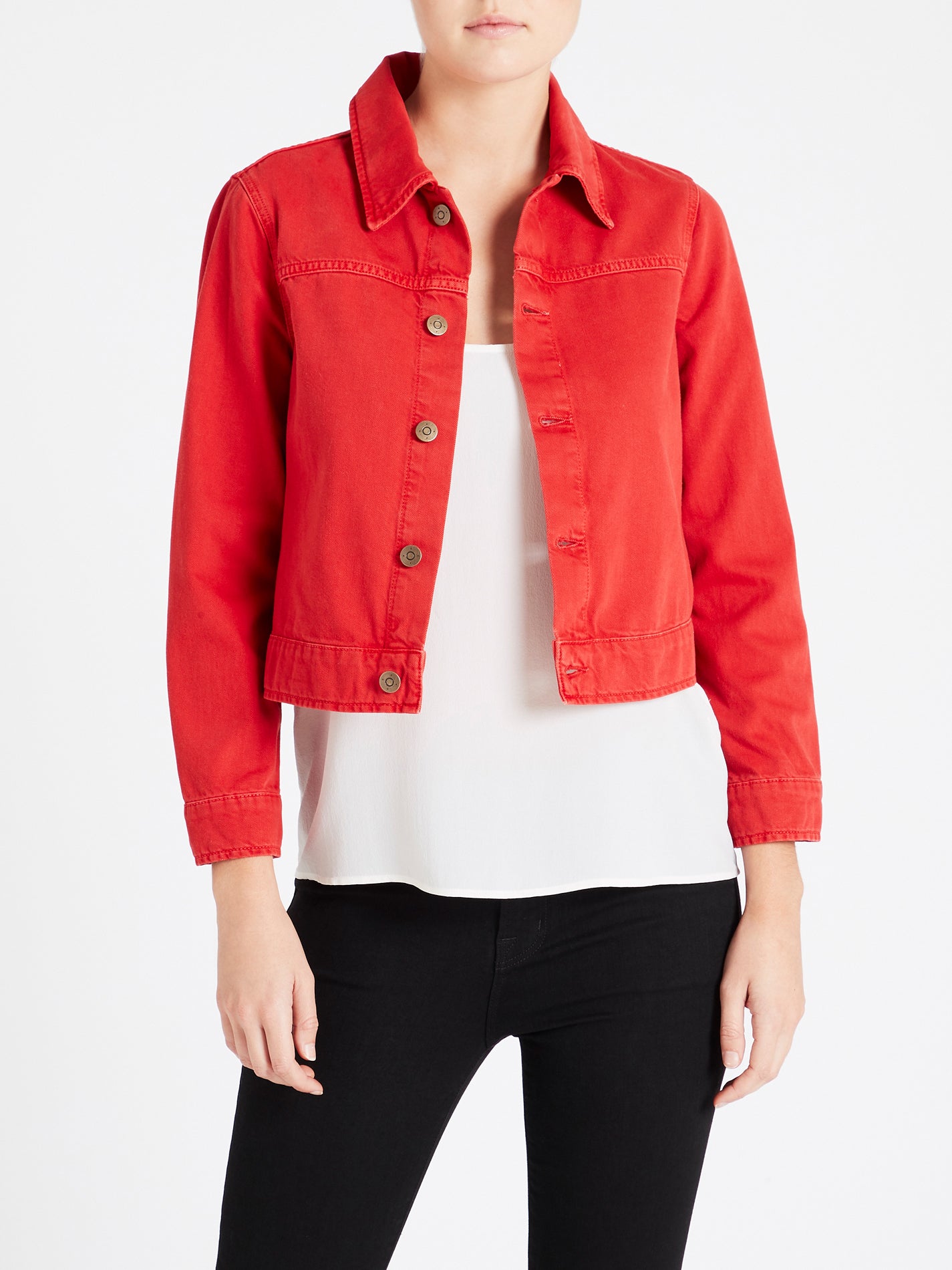 The Daily Jacket in Red from M.i.H Jeans is made from: 100% Cotton