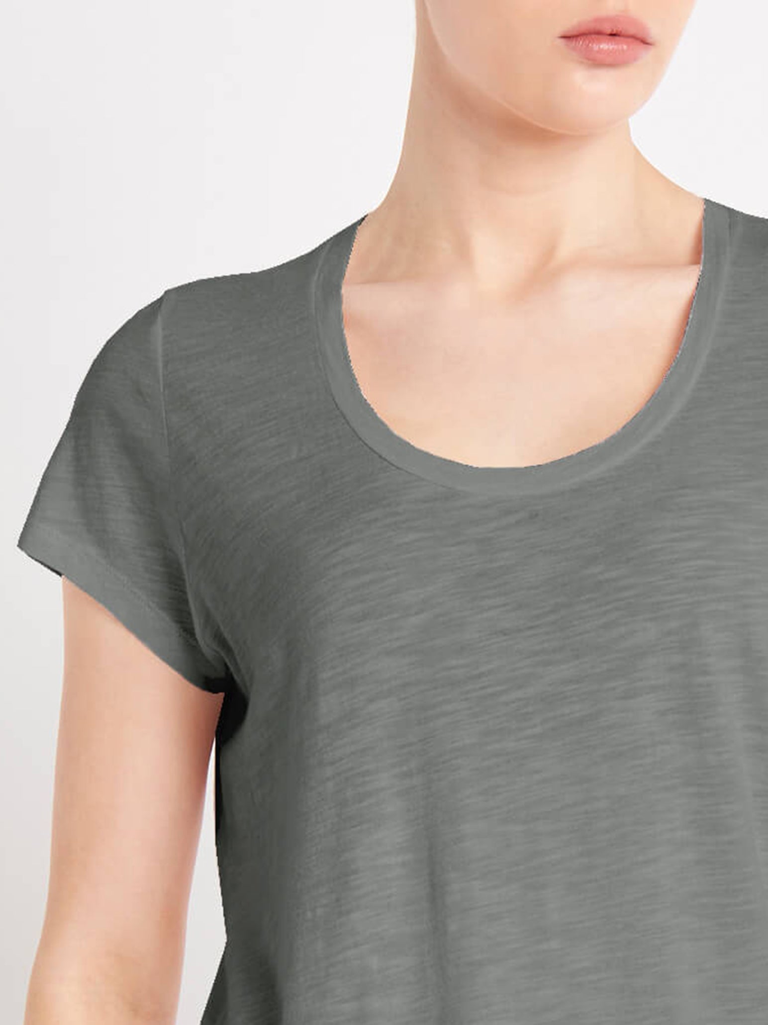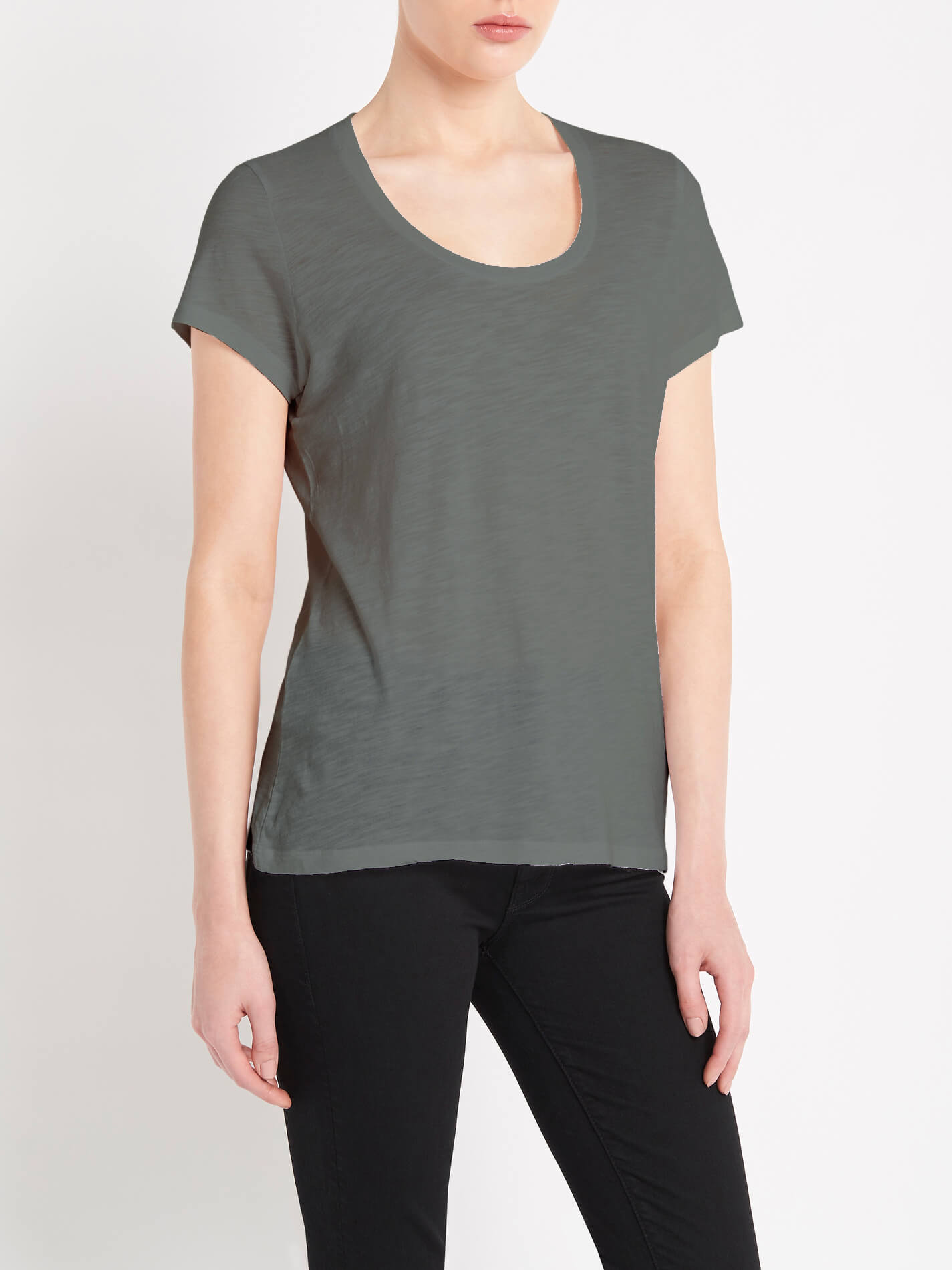 The American Vintage Jacksonville Trapeze Tee in Silex a milky warm grey tone is a must have basic item, that can be worn all year round. Made from a lightweight cotton blend, this American Vintage round neck tee is the perfect match for your favourite pair of skinny leg denim jeans.