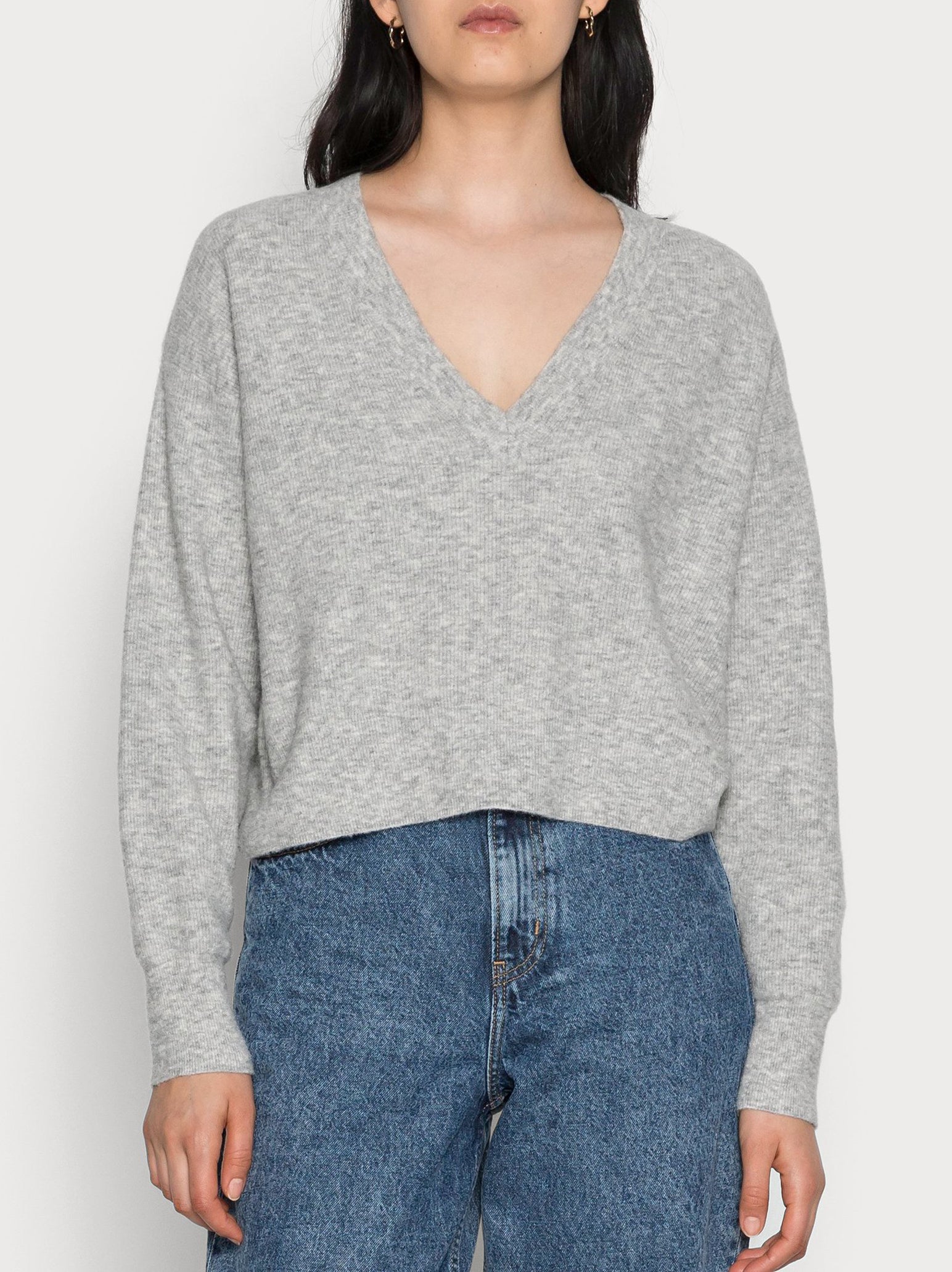 The American Vintage Noxon Sweater in Heather Grey is a loose style fit, consider sizing down for a firmer fit