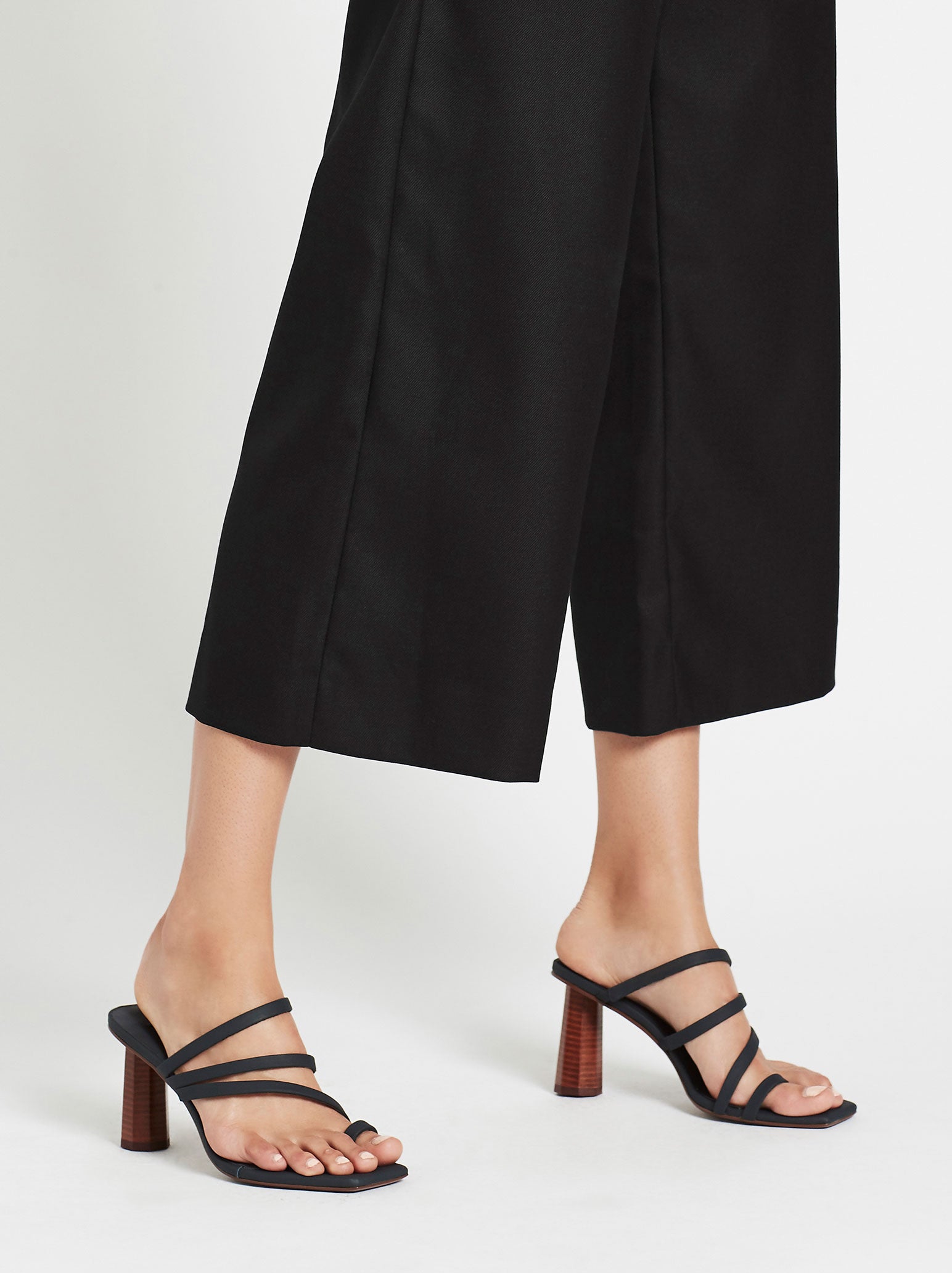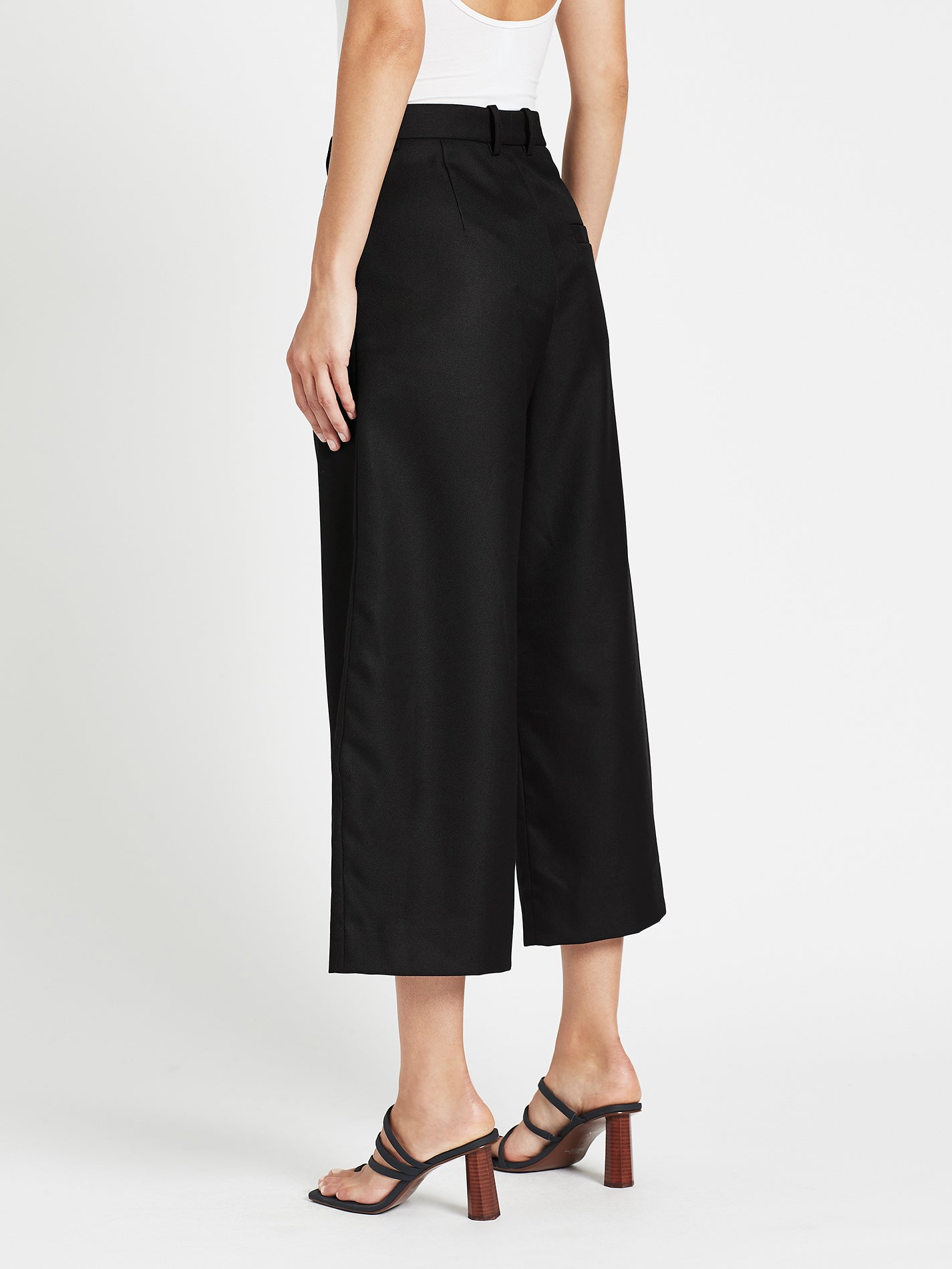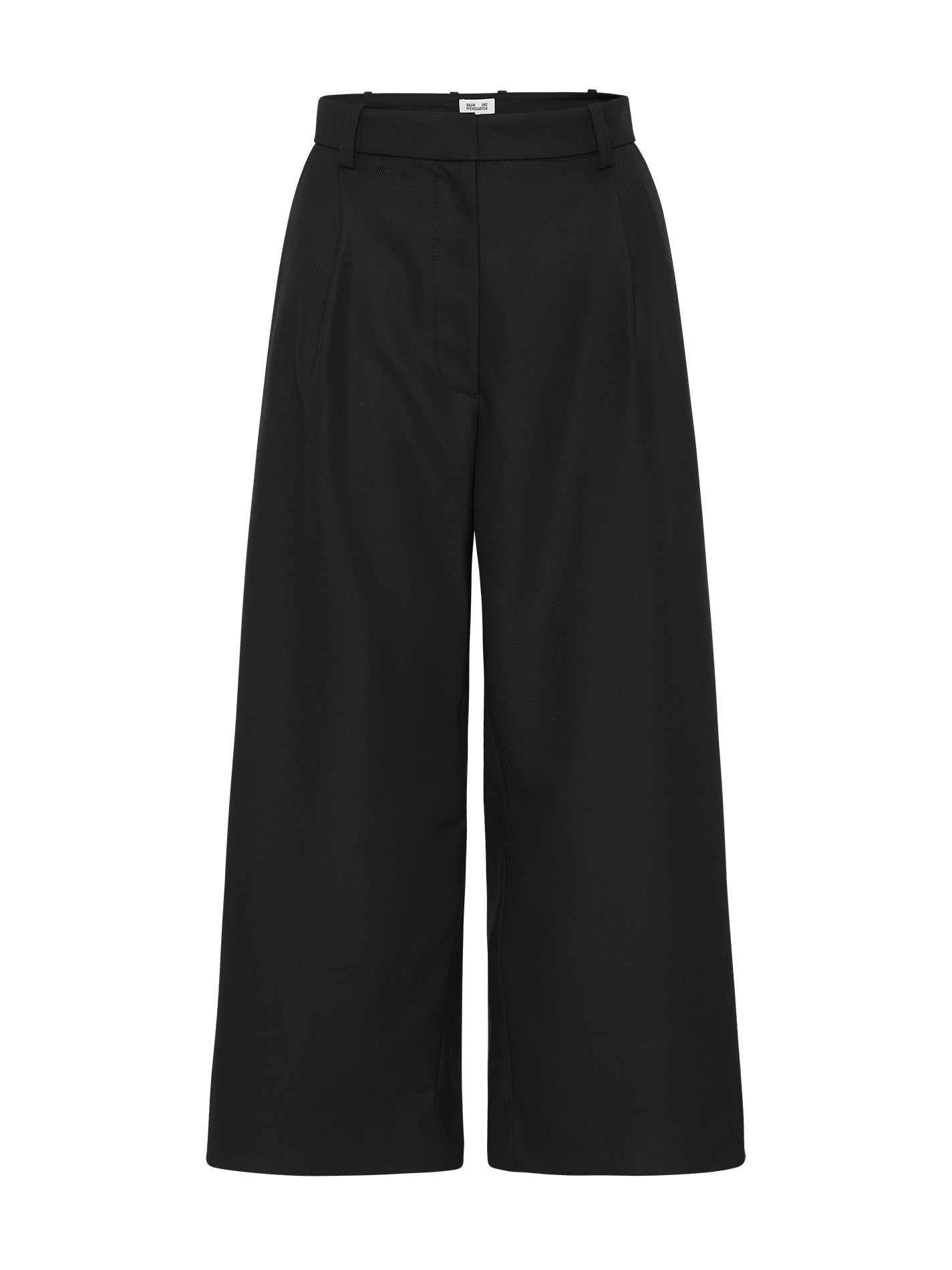Give a wardrobe staple and modern update with the Nilina Pant in Black by Baum Und Pferdgarten. Constructed from Ceramica fabric, a polyester blend that promotes wrinkle free wear as well as being environmentally friendly, these wide leg, cropped pants feature tailored front dart pleat detailing with a feature back pocket and is finished with an invisible zip fly closure and belt loops making it perfect pant that will take you from office to bar. Complete the set with the Baum Und Pferdgarten Beyonce Jacket in black.