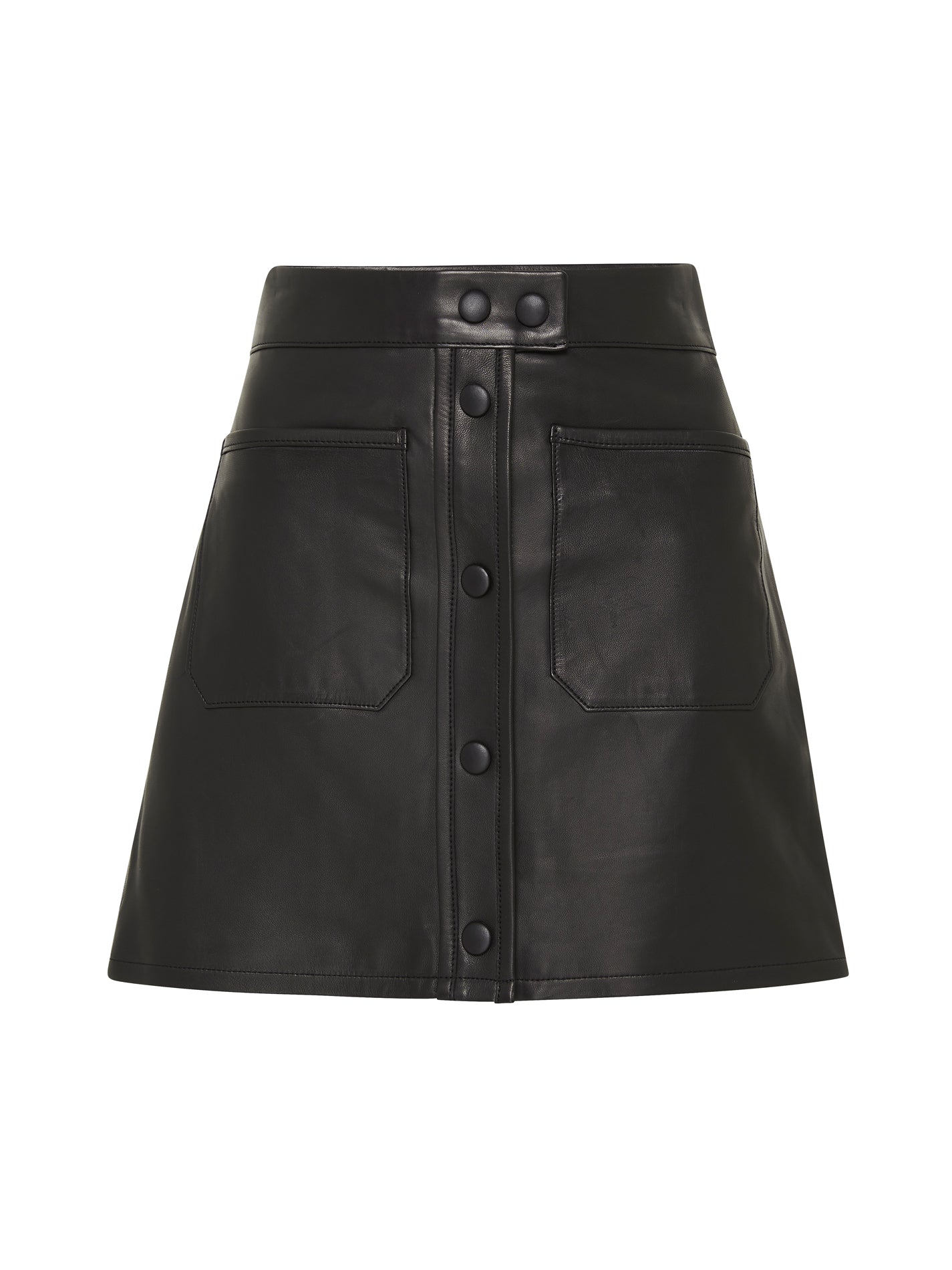 The Frame Denim Patch Pocket Skirt in Noir is made from 100% Leather