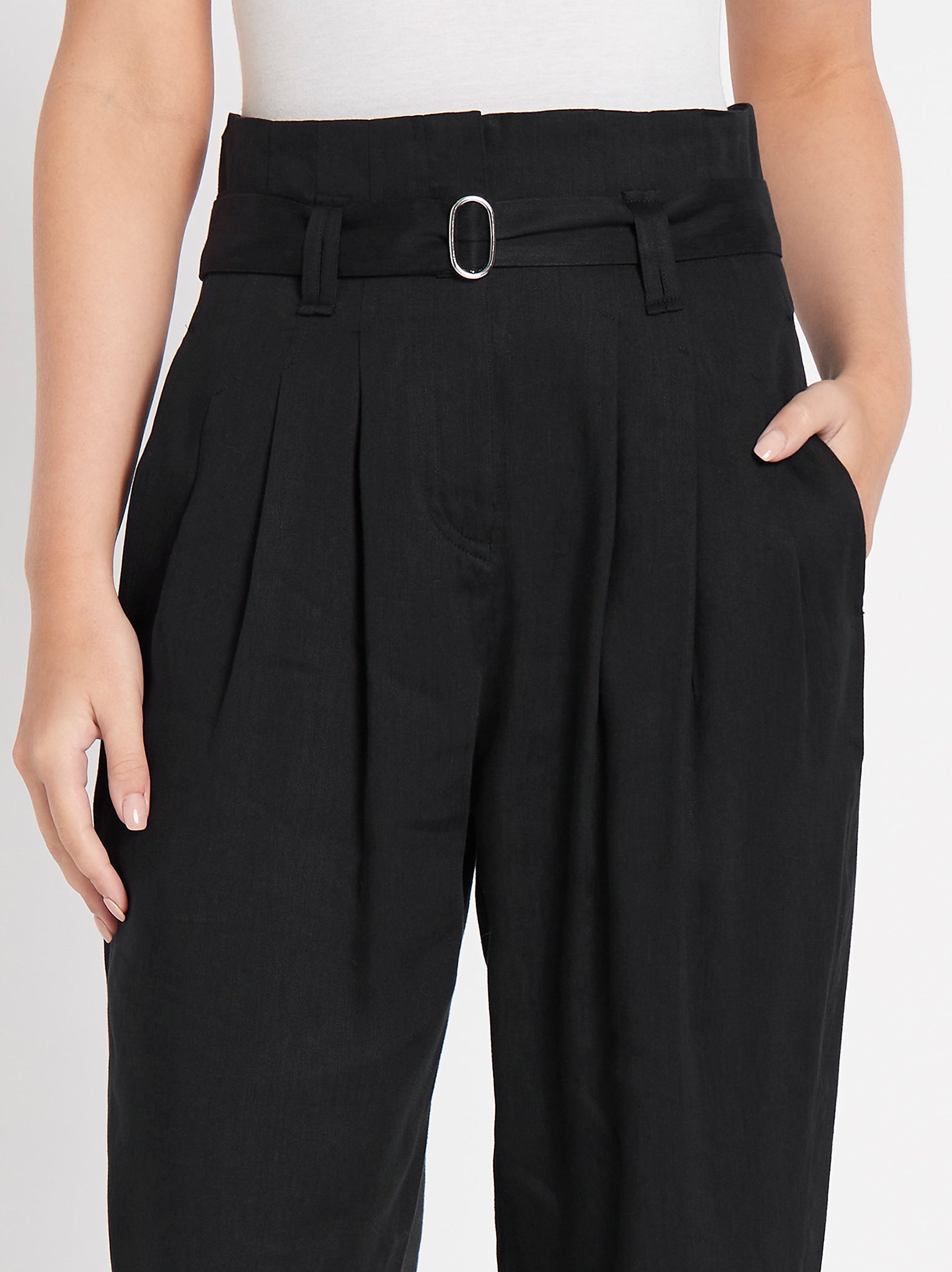 Keep it chic with the IRO Margate Pant in Black. These classic tapper leg trousers are constructed from a soft linen blend and feature a high rise, belted waist and soft pleats.