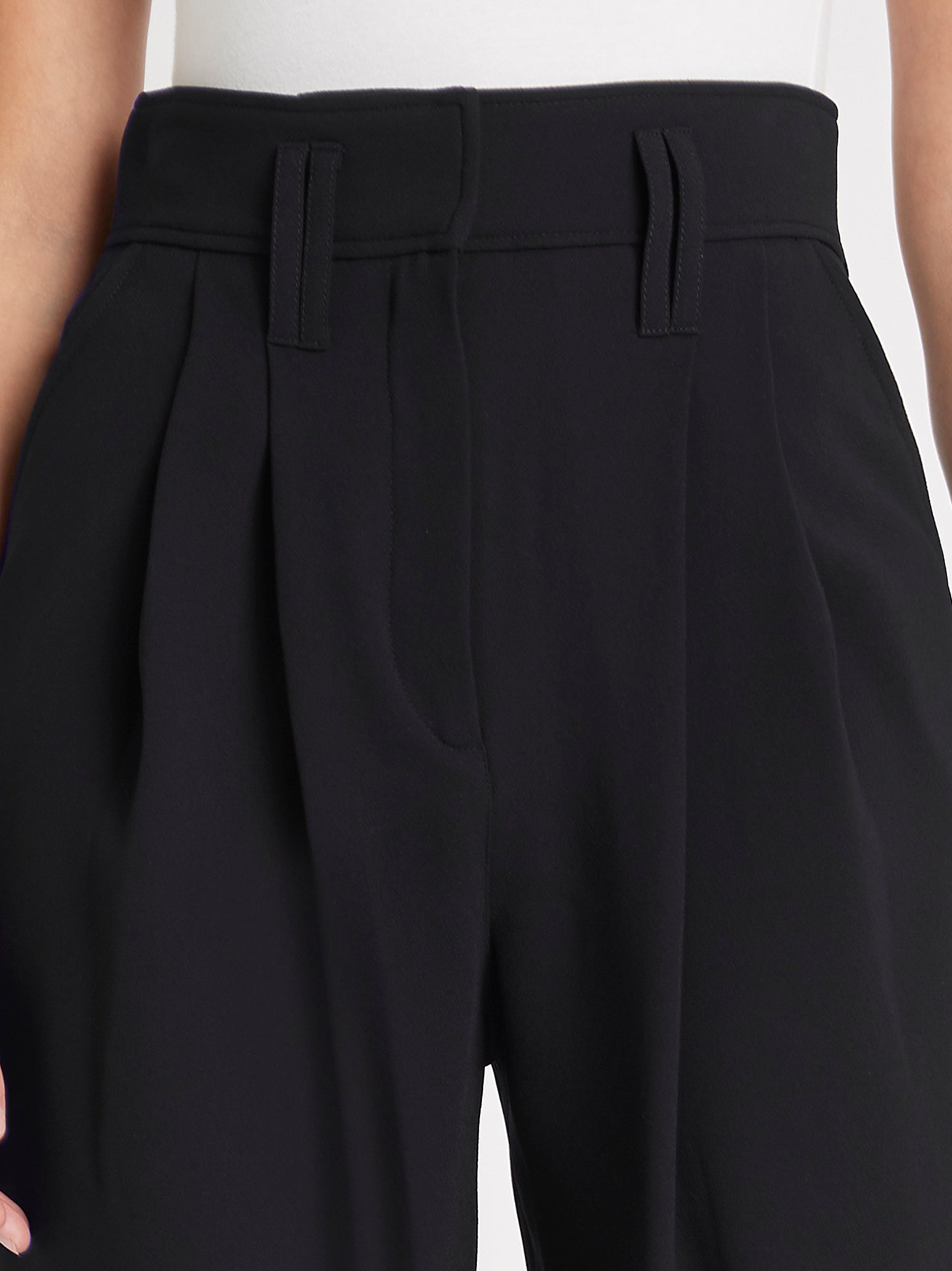 Timeless and chic, you can't go wrong with the IRO Rexo Pant in Black. This versatile wardrobe staple features a high rise, zip fly with hook and eye closure, soft pleat detailing and side pockets. Team with a bold blouse for a pop of colour and a classic leather belt.