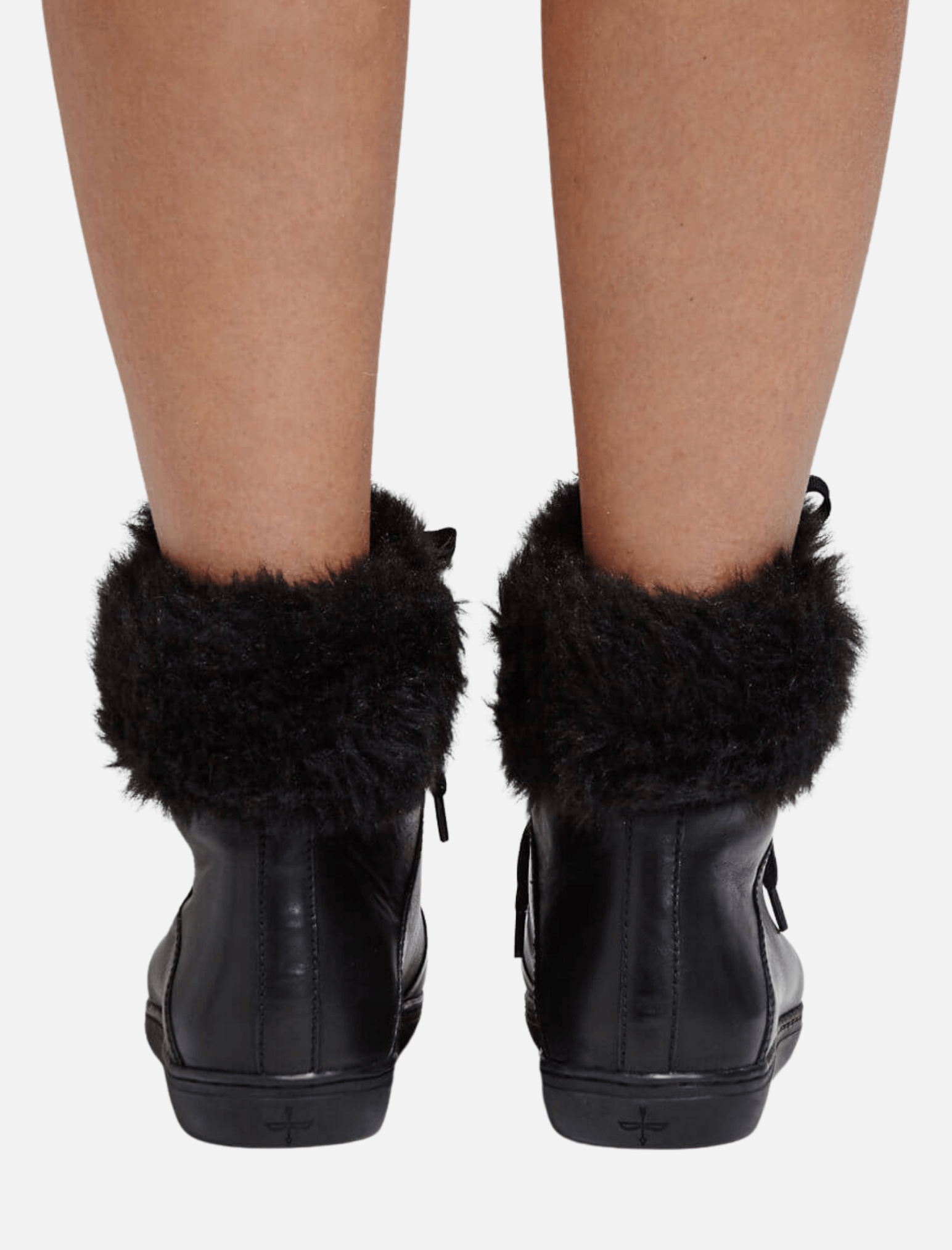 Crafted with arctic chic in mind, this shoe features a super soft faux-fur collar that adds a touch of elegance and coziness to a streetwise high-top sneaker design. The silver grommets and platform rubber sole add a touch of sophistication and durability, making these boots perfect for any winter adventure.