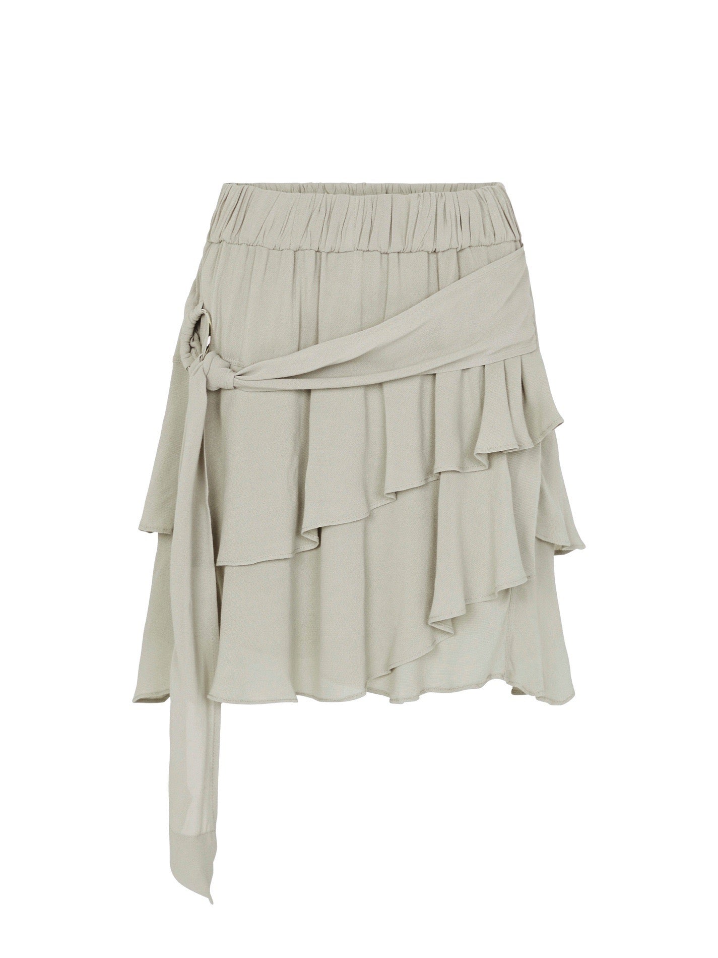 The IRO Bullia Skirt is a fun and flirty take on the traditional tier skirt. Featuring an O-ring belt and tiered ruffles this lightweight grey skirt is the perfect match for your favourite ankle boots or slides.