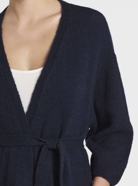 The Vikiville Long Sleeve Cardigan in Navy by American Vintage is made from 28% Wool 28% Acrylic 23% Polyamide 18% Mohair