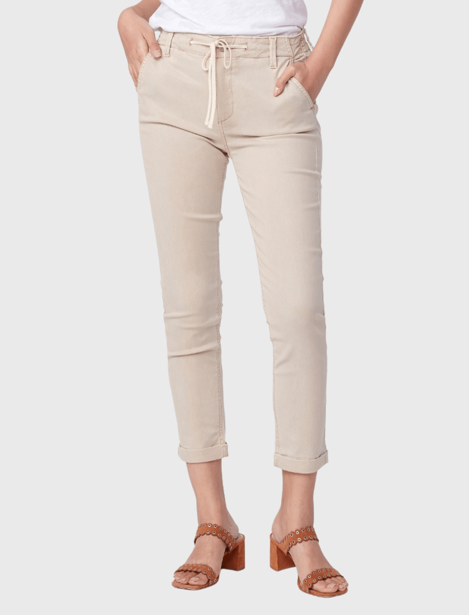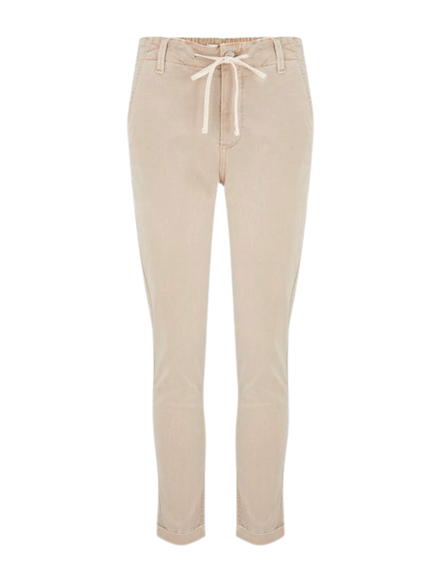 Don't sleep on this - Paige's best selling casual style is the ultimate in weekend ready-wear. This soft chino - jogger hybrid style is the style that you need to swap your leggings out for. This faded beige tone features a narrow ankle hem and a soft drawstring cord. Match back with a shirt and sandals for a breezy dressed up look or with sneakers and a graphic sweatshirt to enter sports-mode.
