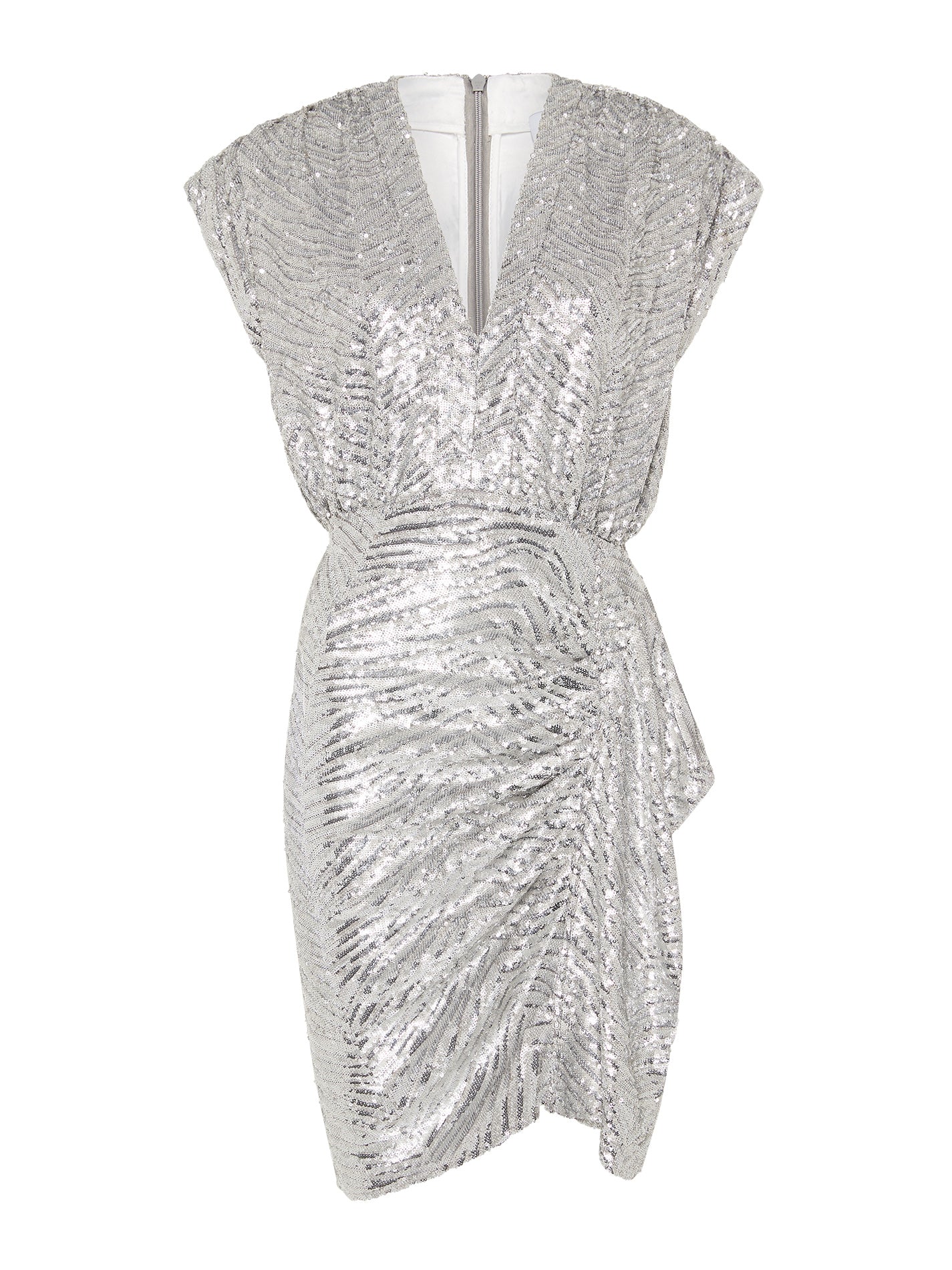 The IRO Sagria V Neck Mini Dress in Silver Sequin is made from 100% Polyester