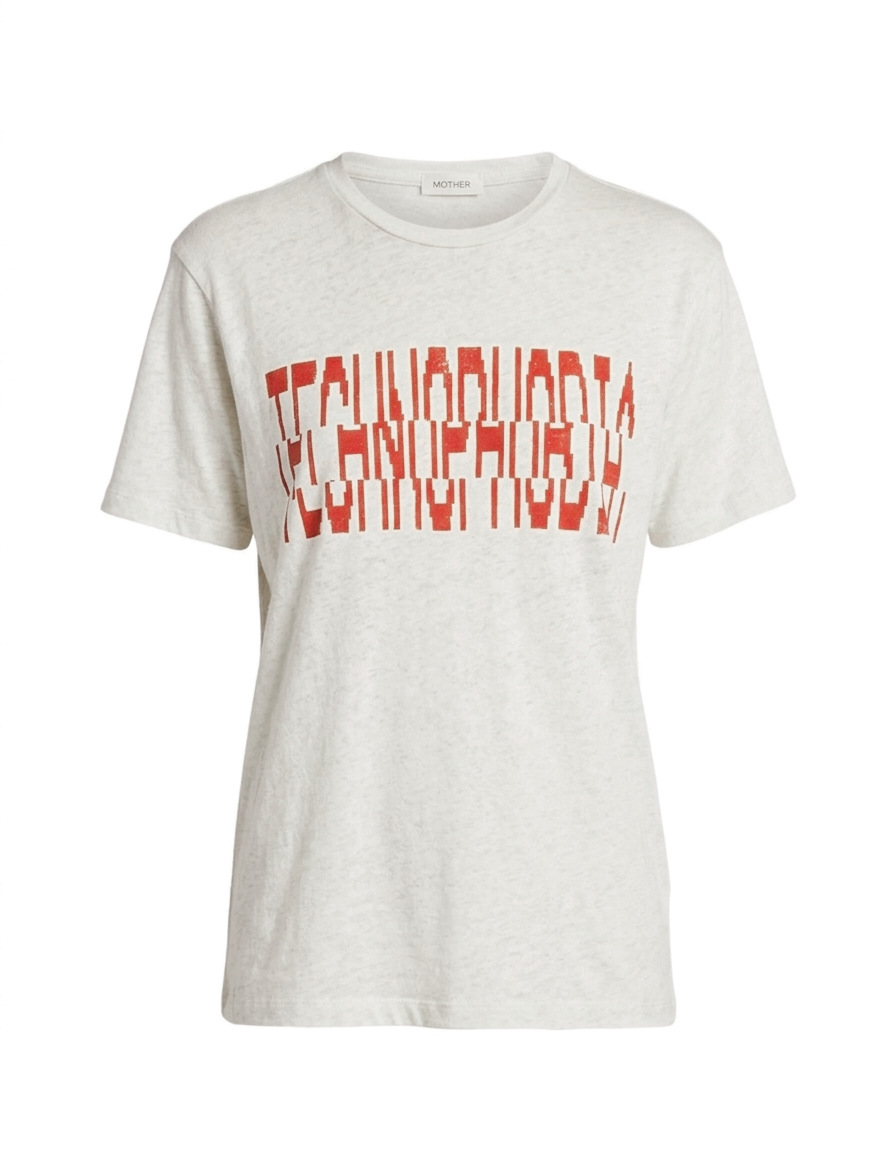 Reboot your style with the Mother Denim The Rowdy Tee in Technophobia White. Constructed from a slubby cotton linen blend, this oversize tee features a glitchy graphic on the front, and an explicit decoy number on the back. You'll look good enough to take a byte - we are Siri-ous!