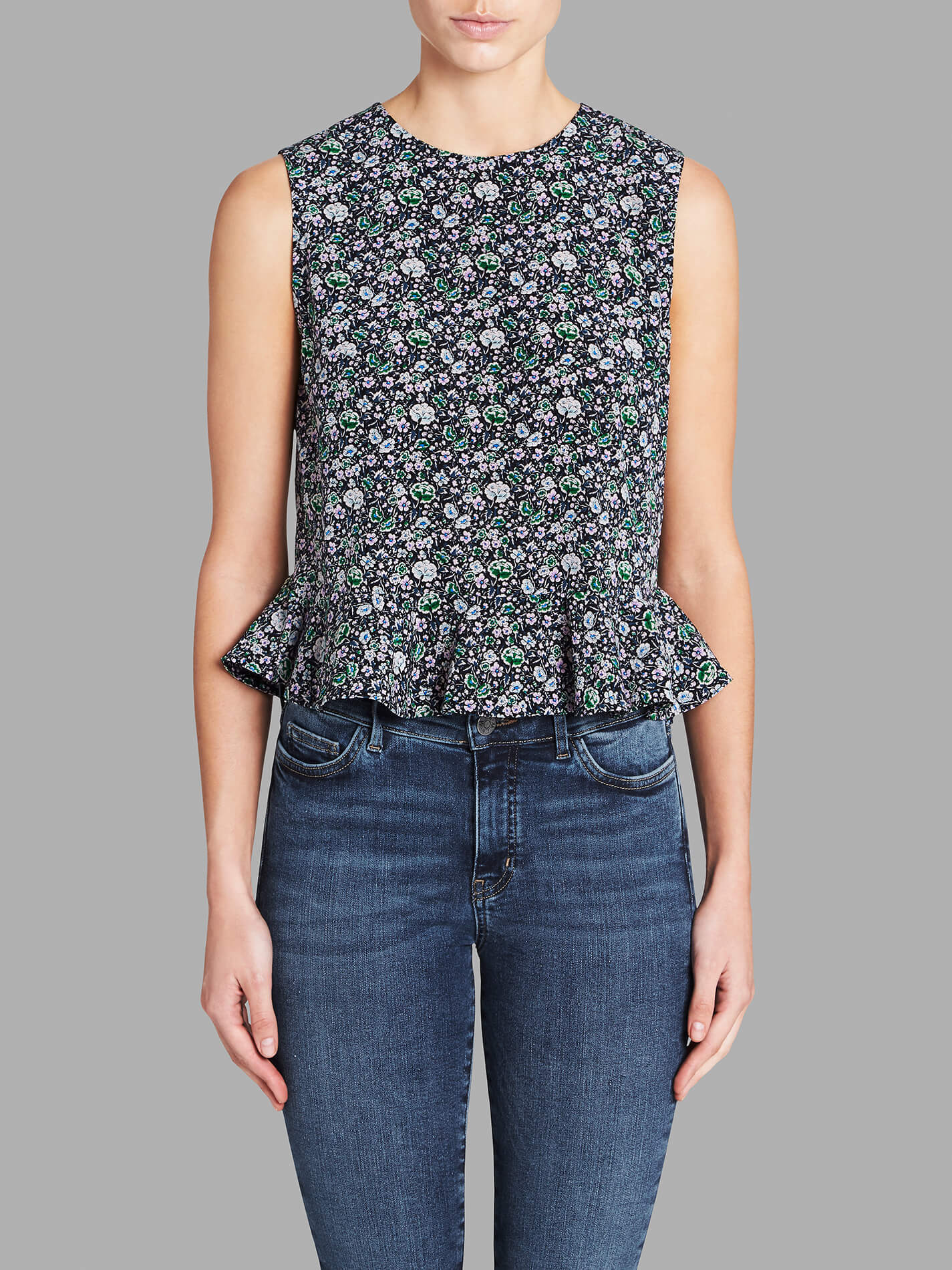A charming and feminine addition to your wardrobe, the Rebecca Taylor Lavish Grid Top in Forest Combo is a sophisticated take on a classic sleeveless tank. This piece features a flattering peplum hem that creates a beautiful silhouette.