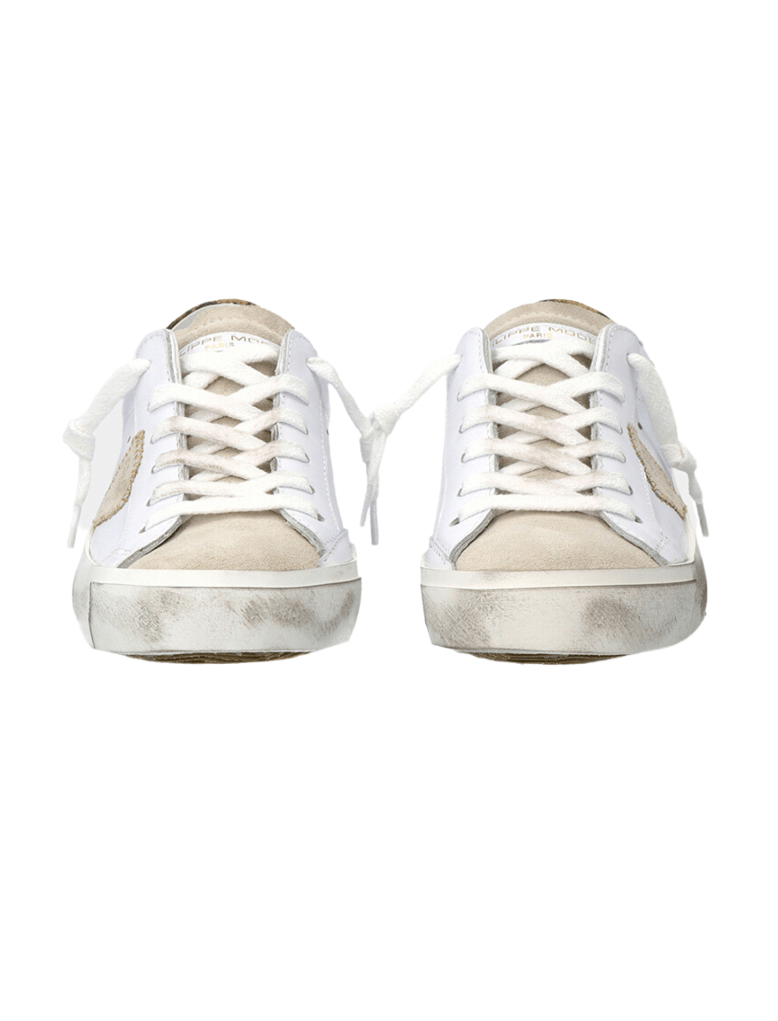 Philippe Model PRSX Low Sneaker in Leo Blanc Brun