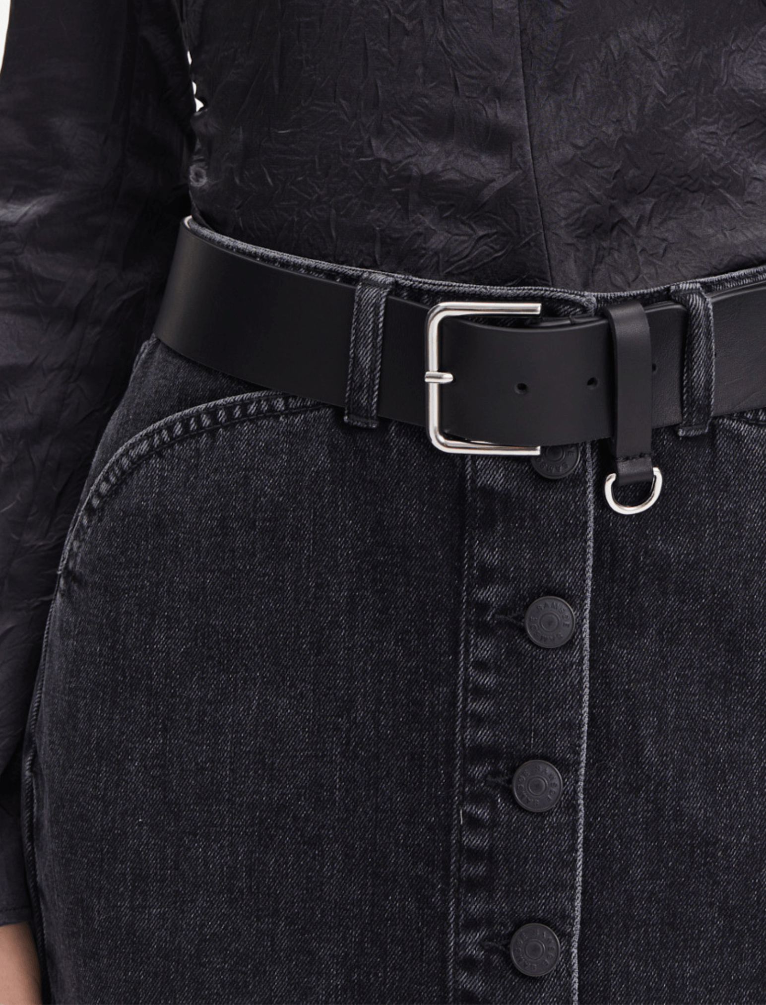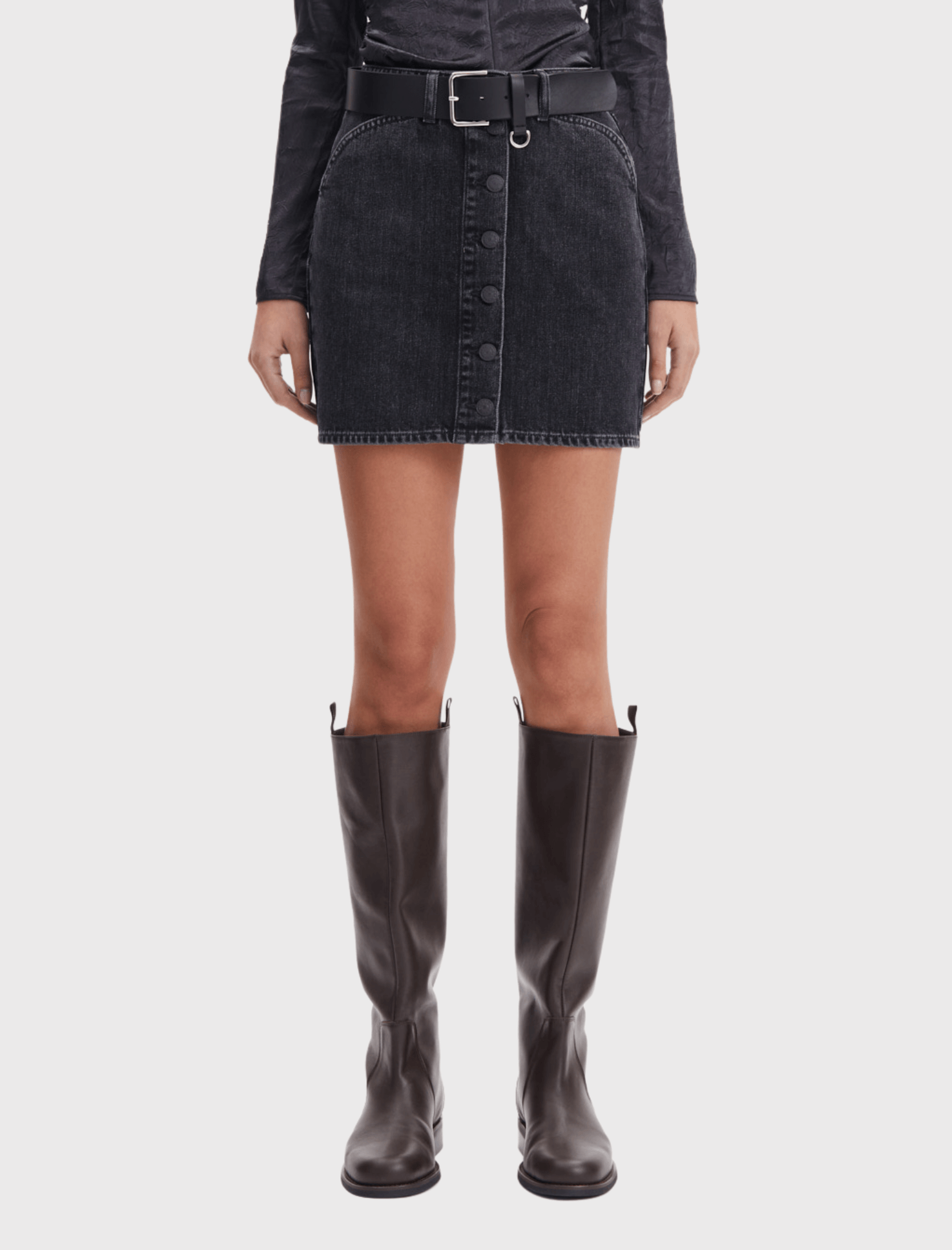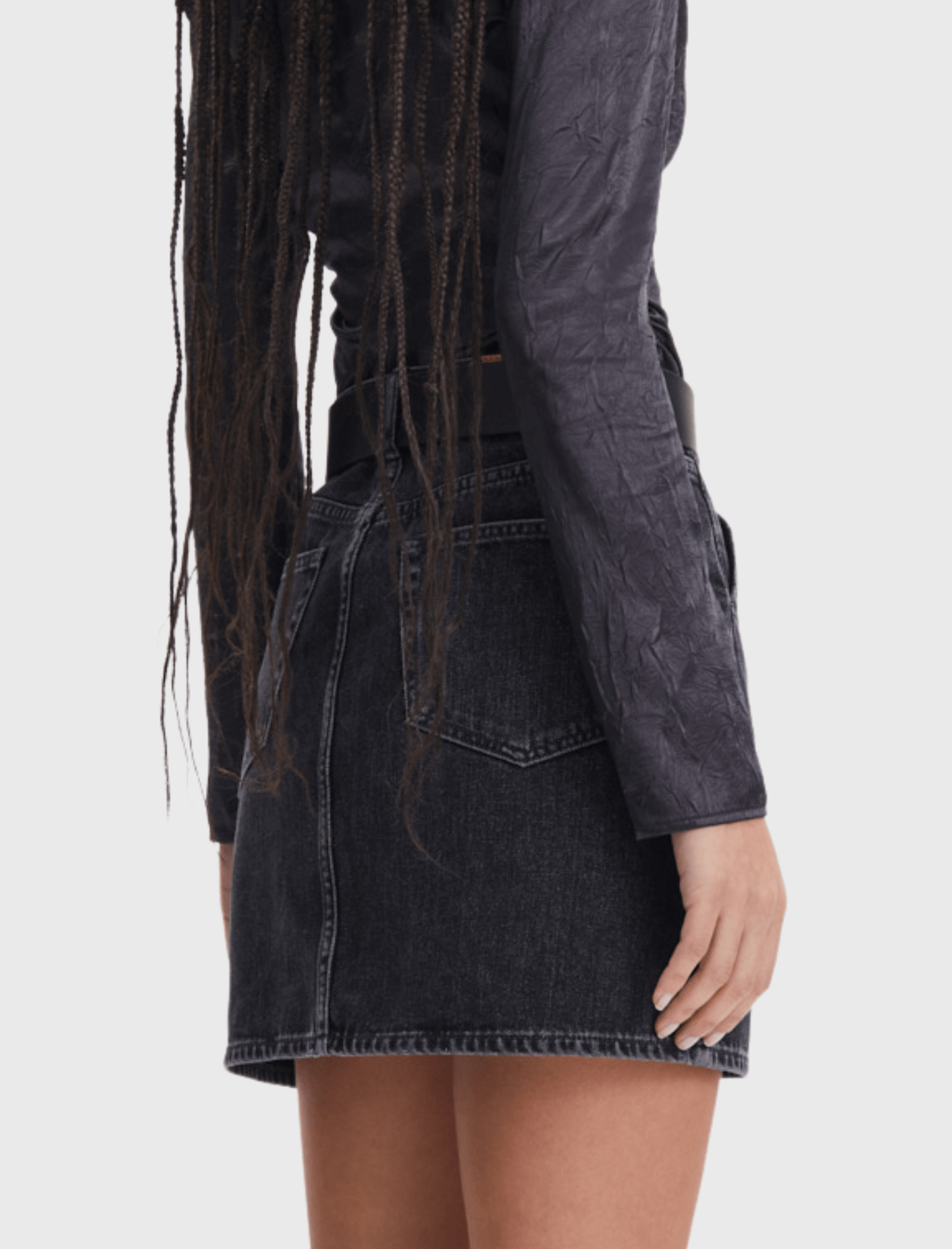The Samsoe Samsoe Norma Denim Mini Skirt in Black fits true to size