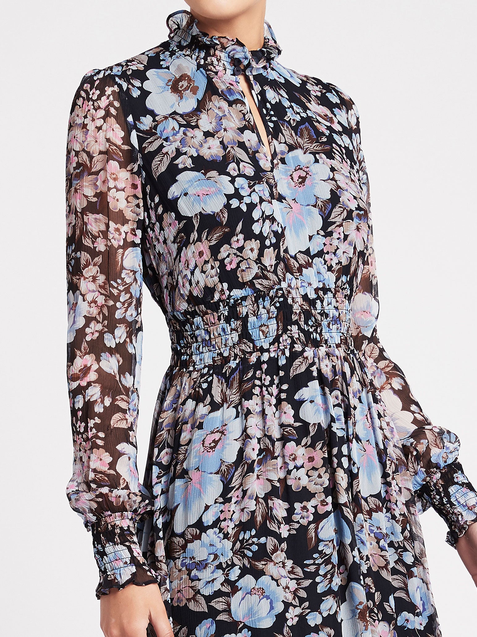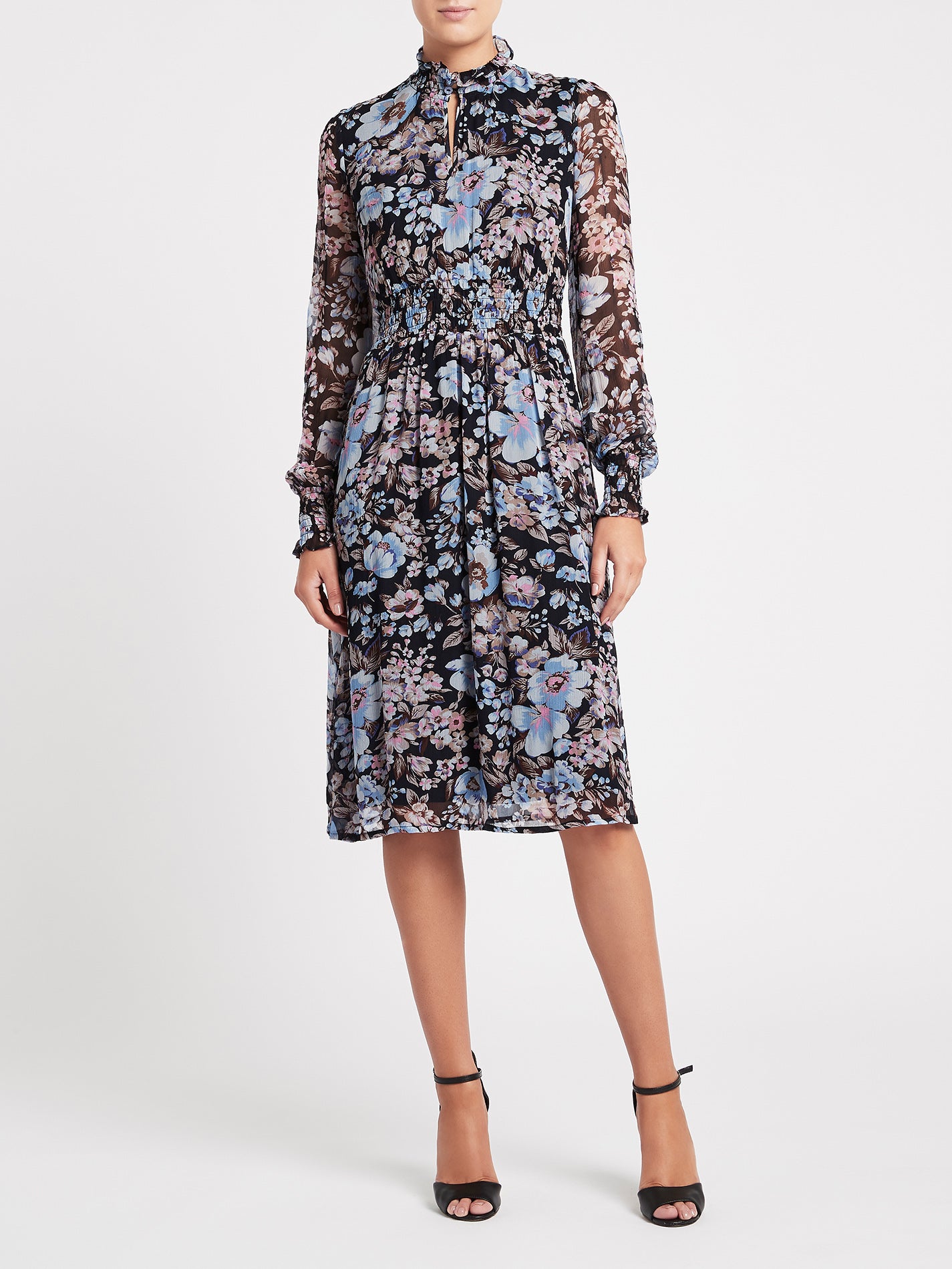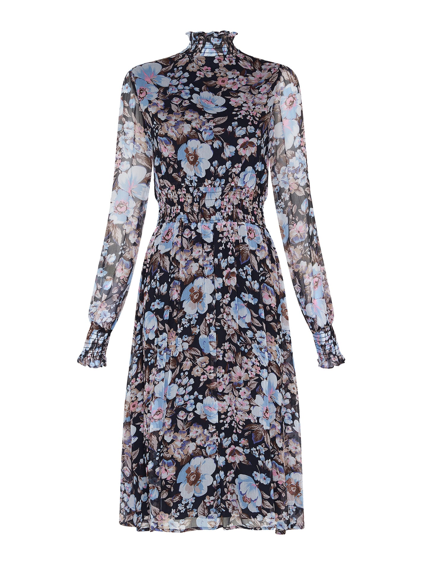 The Baum Und Pferdgarten Amal Dress in Navy Floral is a year-round staple for your wardrobe. A sheer midi-dress with smock details at the waist, neck and cuffs, this dress is transitional from Autumn through Spring. Perfect for the office, weekend events, and nights out, this chic dress is a soon to be classic.