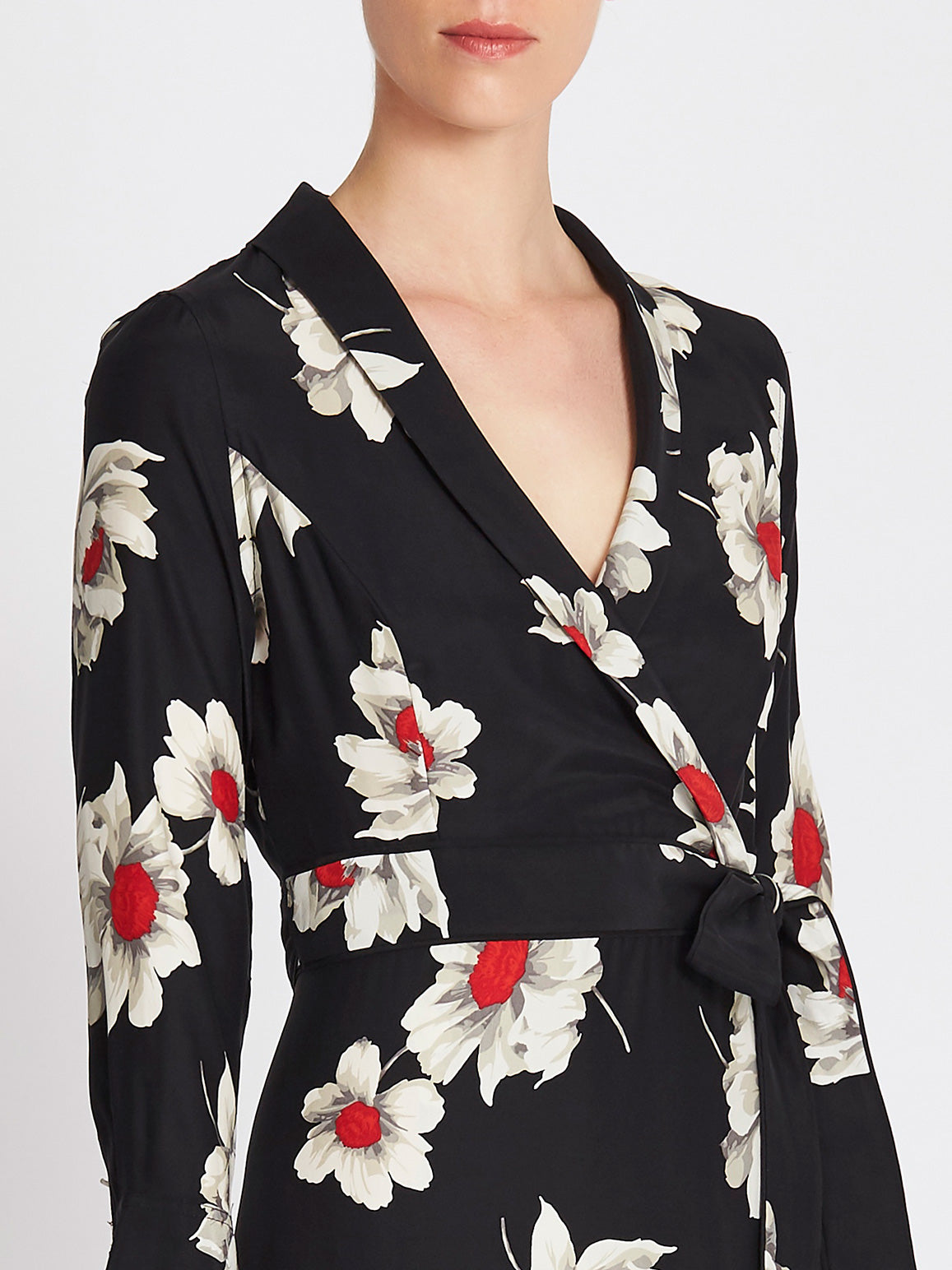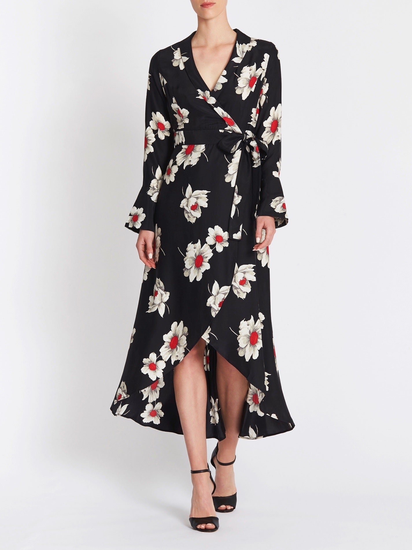 We've got the perfect wrap dress for spring with the Equipment Gowin Dress. Constructed from stunning dark floral printed silk this easy to wear dress features long sleeves, v-neckline, a self tie waist, and is finished with a hi-low hem.