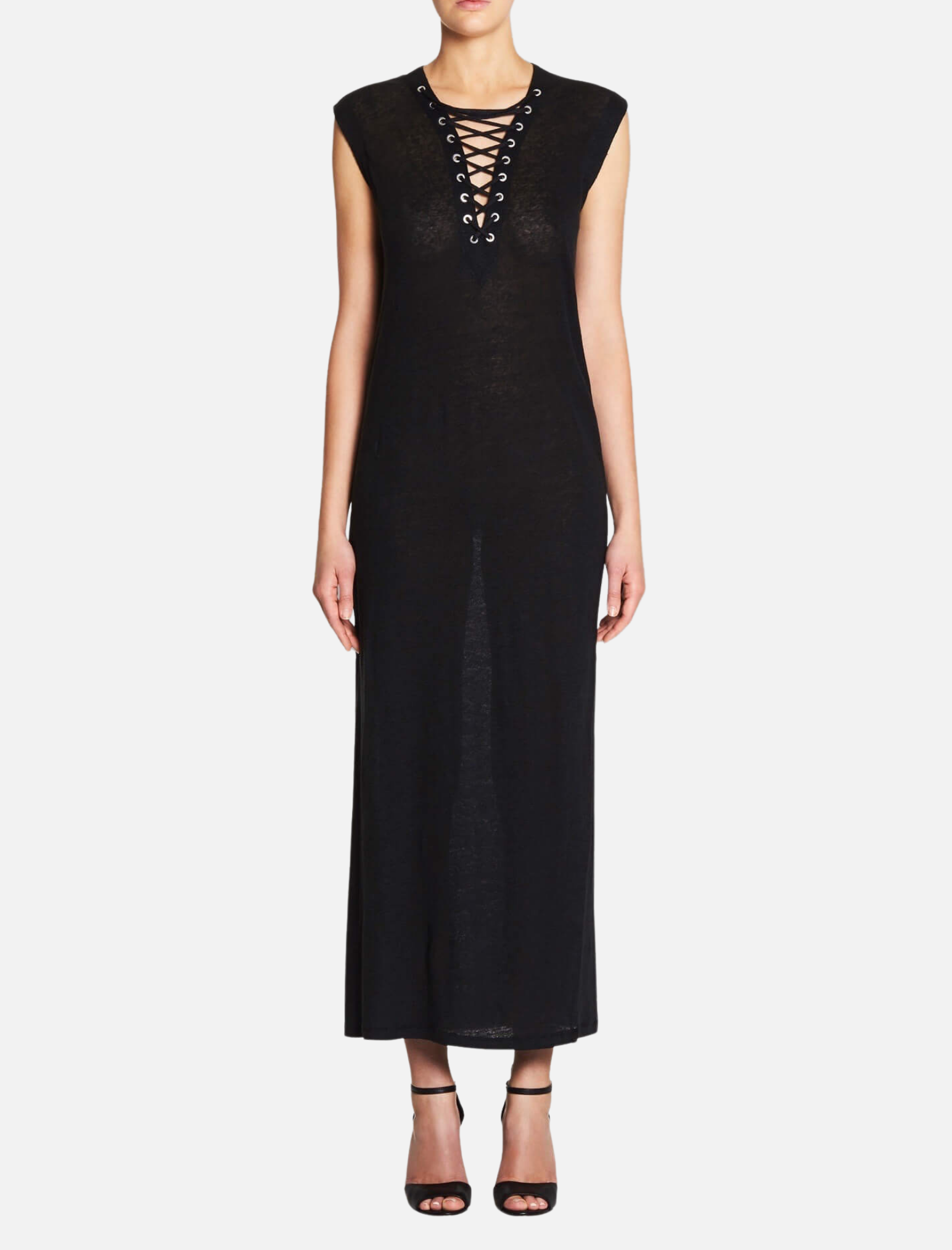 The IRO Daisy Maxi Dress is made from a lightweight breezy linen, perfect for the warmer months. This sleeveless style features a lace up v neck with silver eyelets, adding an edgy vibe to this wardrobe classic.
