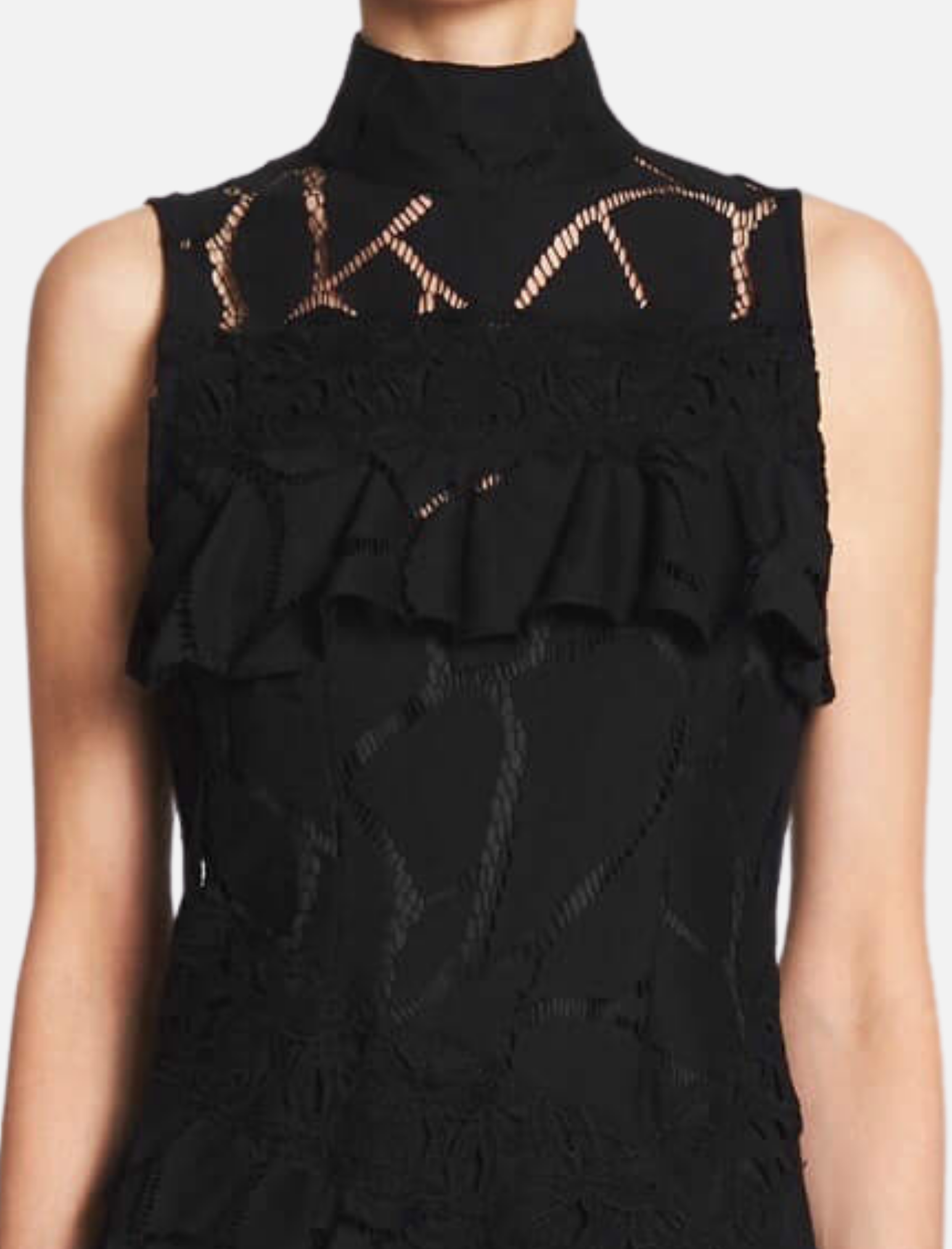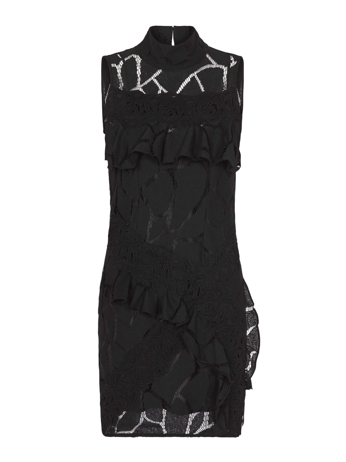For the perfect little black dress with a twist the IRO Ester Dress is the ultimate choice. This slim fit piece features lace and ruffled detailing throughout the crocheted cotton blend fabric, a high neckline and detachable slip. Team with your favourite black heel and a simple clutch.
