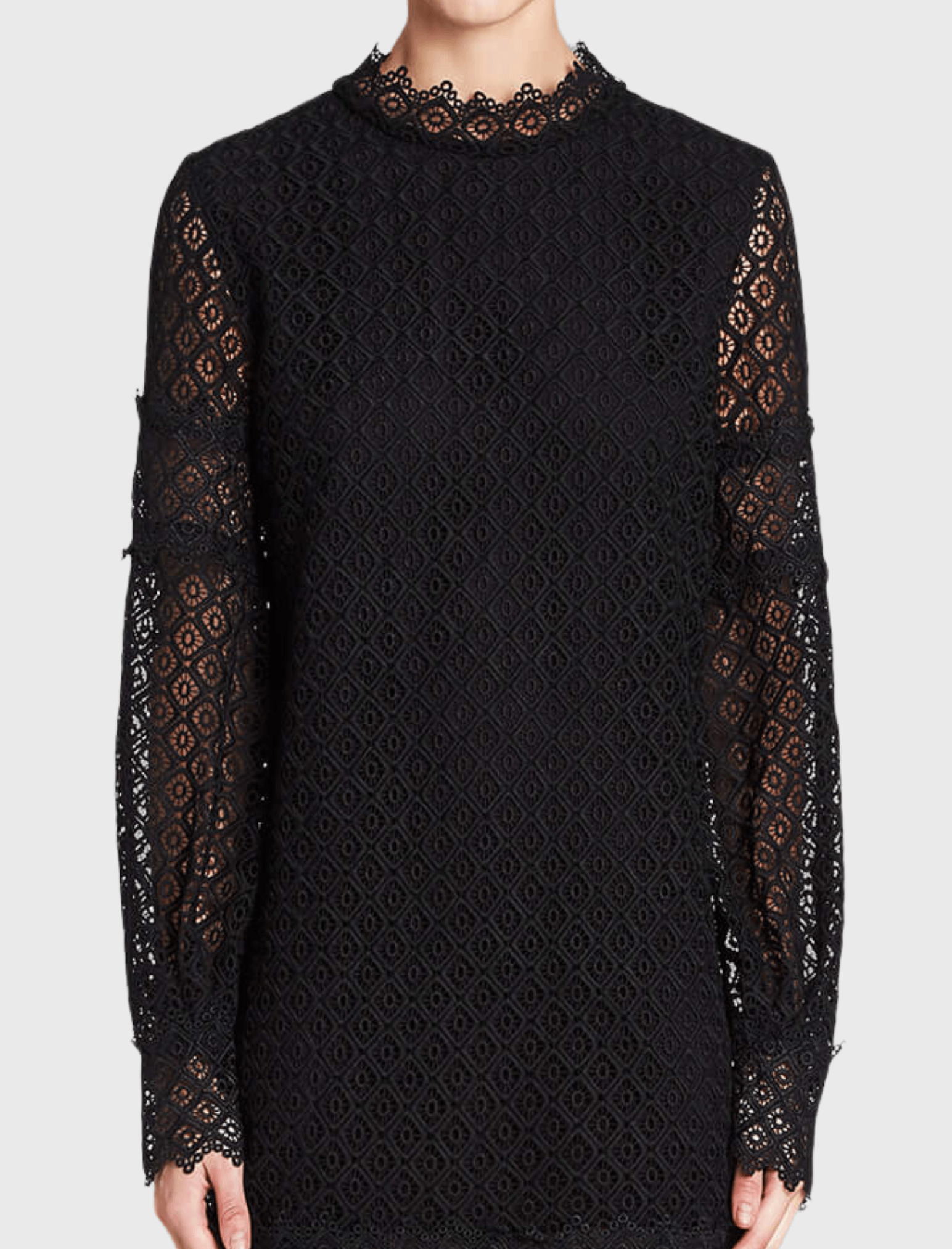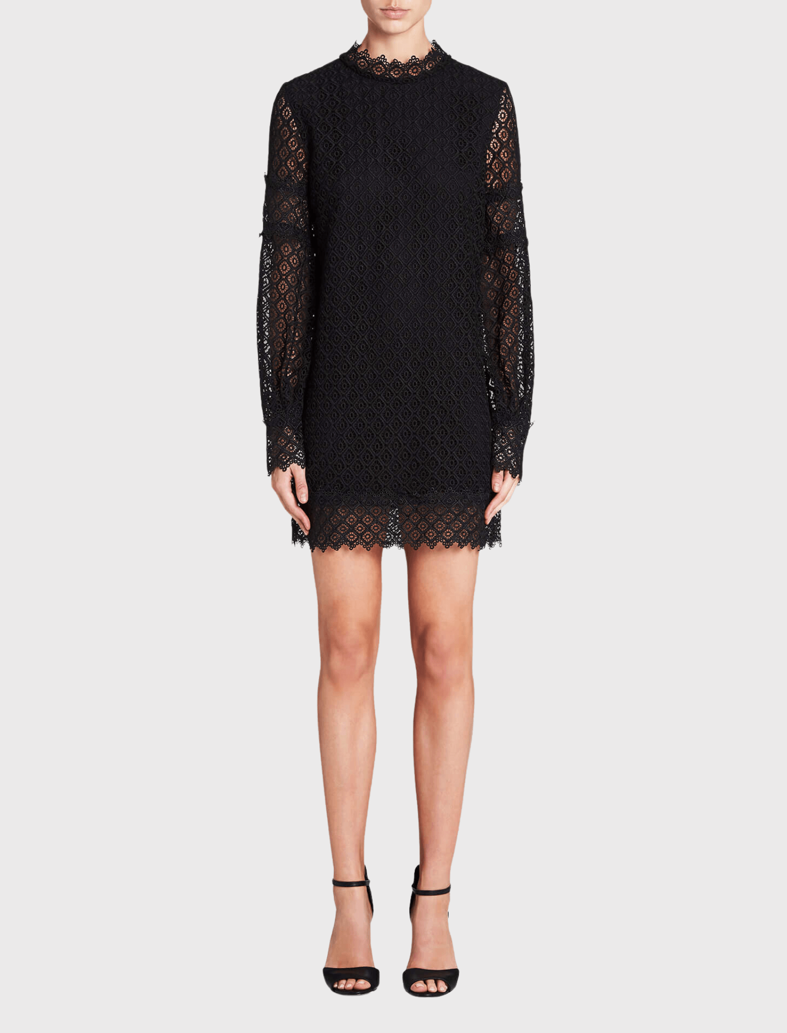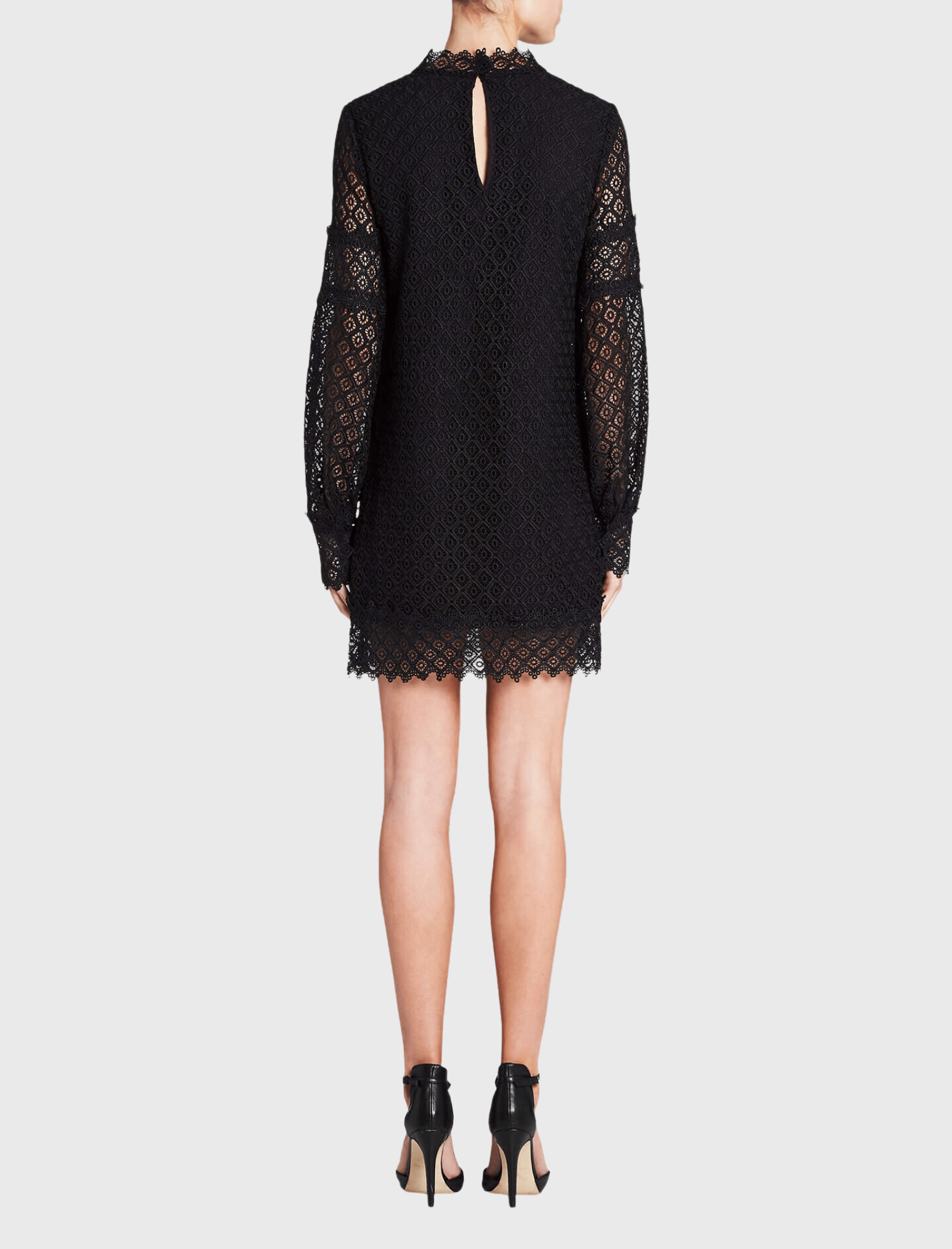 The fully lined long sleeved IRO Kara mini Dress has back keyhole button closure and buttoned cuffs. This piece is detailed with a crew neck and a lace overlay.