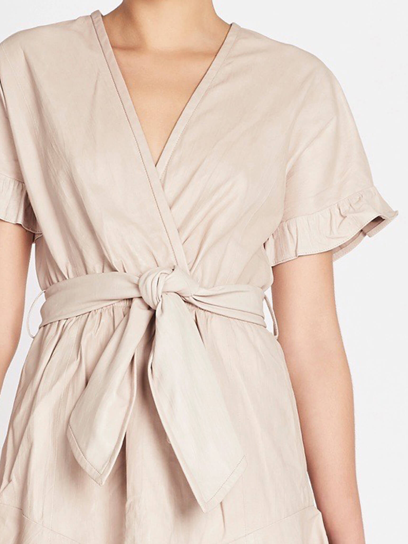 The Paz Dress in Nude is a gorgeous leather mini dress with short sleeve, a V neck, flounced hem and sneaky side pockets..