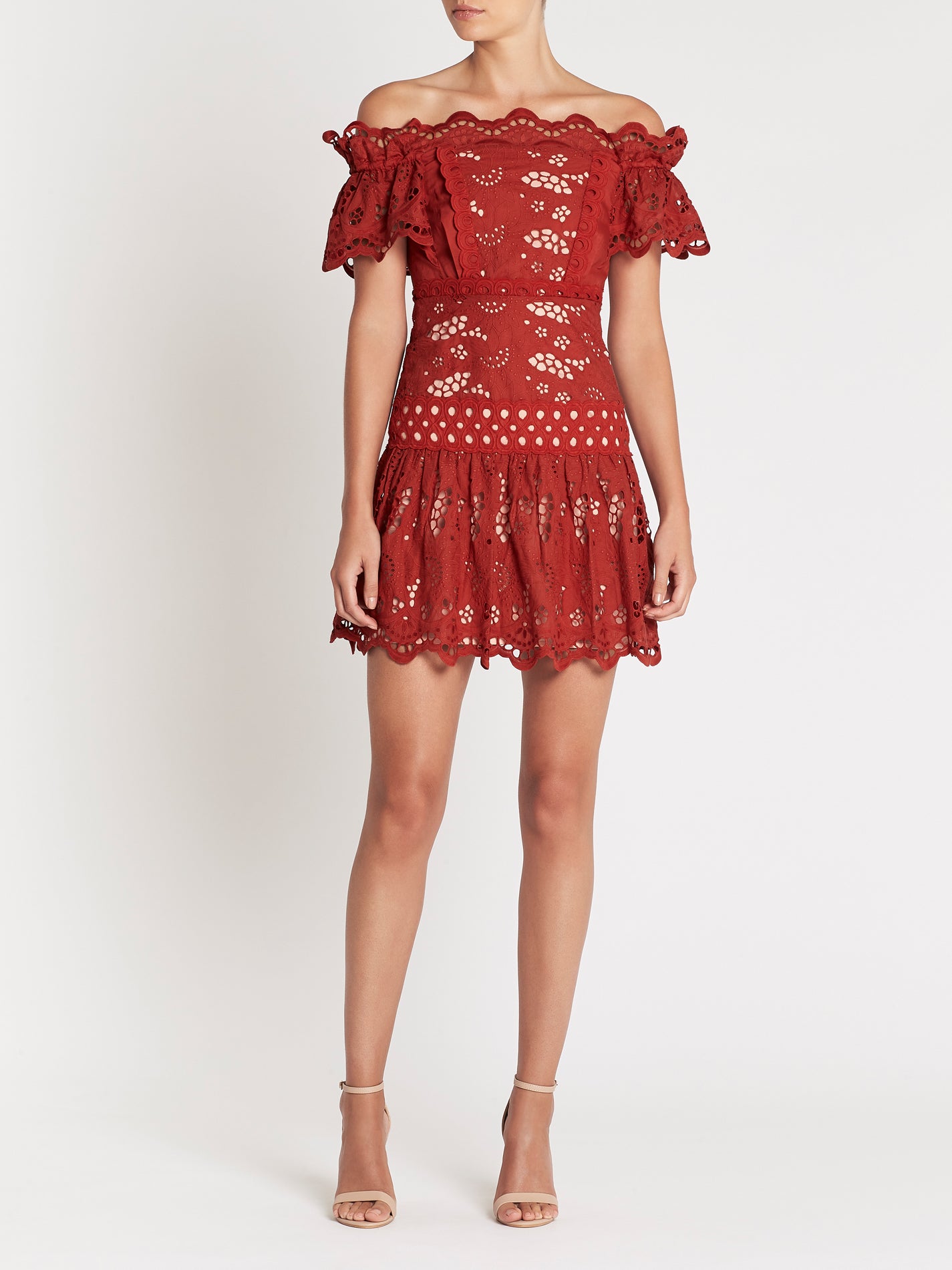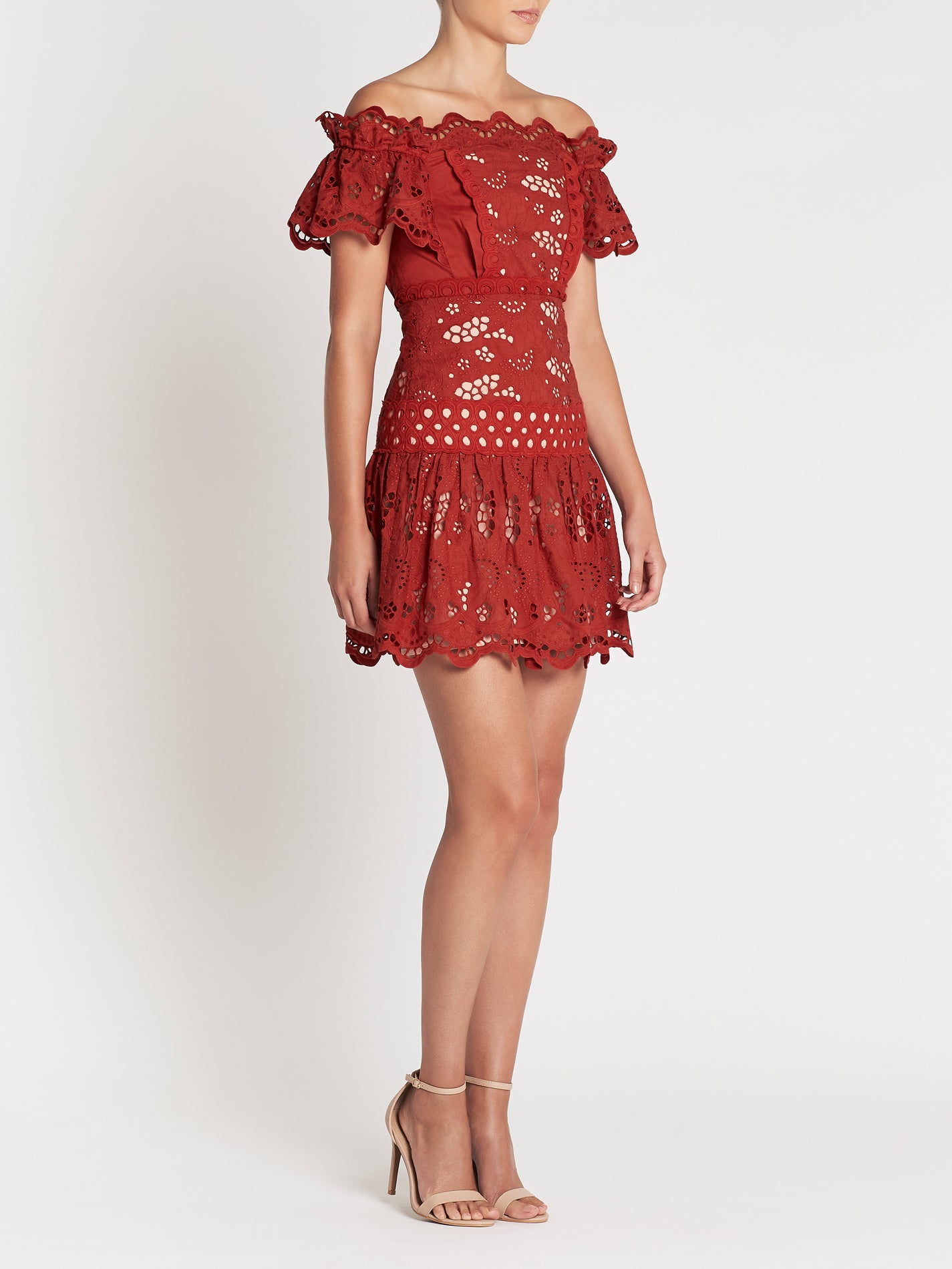 Flatter your figure in the Short & Sweet Dress by Three Floor in Embroidery Anglaise. With scalloped trimmings and a bouncy peplum hemline, the Three Floor Short & Sweet Dress lives perfectly up to its name. Pair with nude wedges and bold earrings to make a statement.