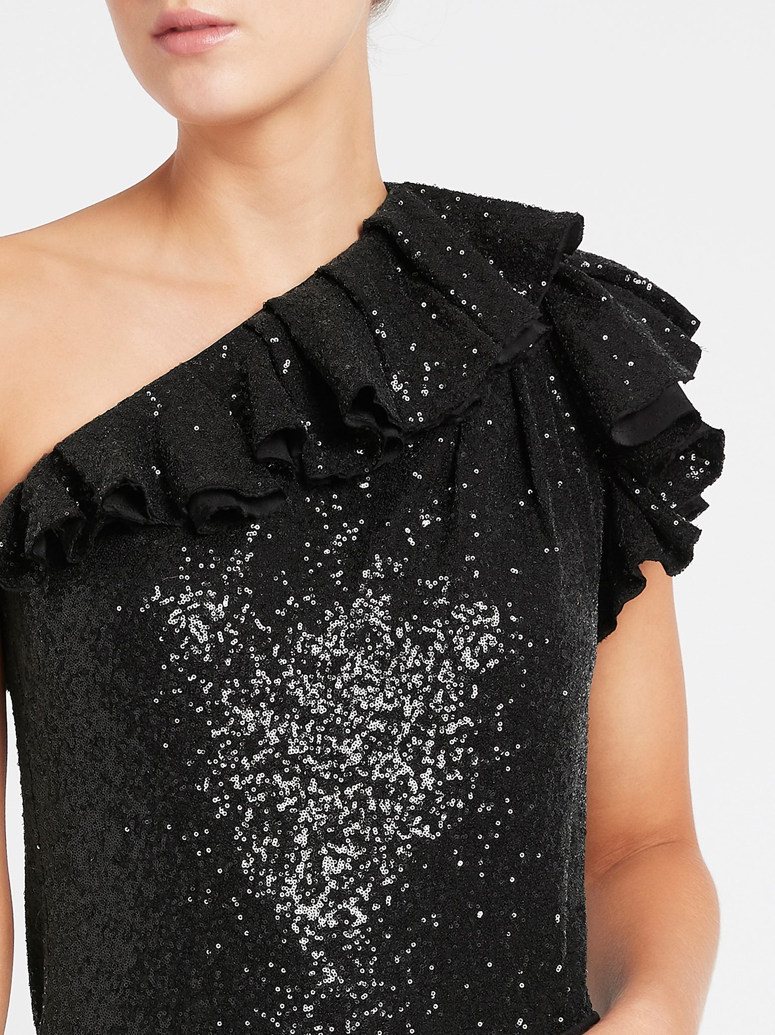 Bold! Dramatic! Romantic! The IRO Lavaur Top in Black is all your soap-opera dreams come true. Truly stand out as the lead character with this asymmetrical top, complete with ruffled sleeves, and sequins. No one can take the spotlight from you - especially if you pair this with high-waisted pants and to-die-for shoes.