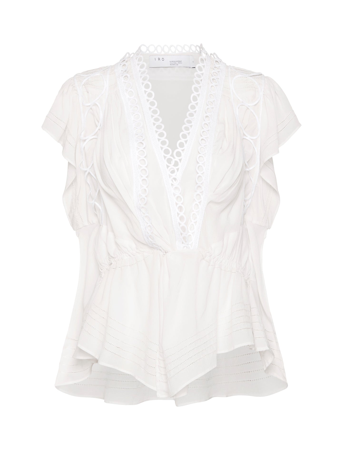 The IRO Mint Top in White is made from 100% Silk and Lace 100% Polyester