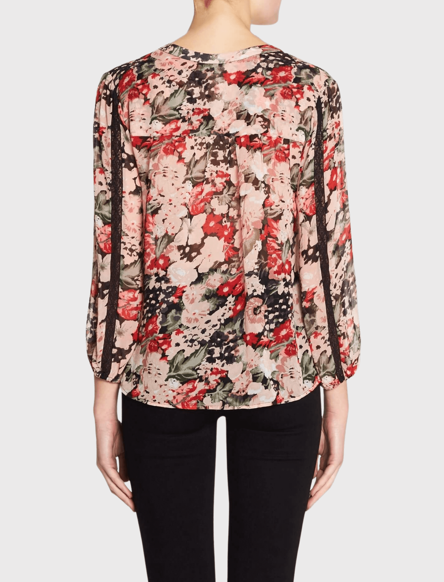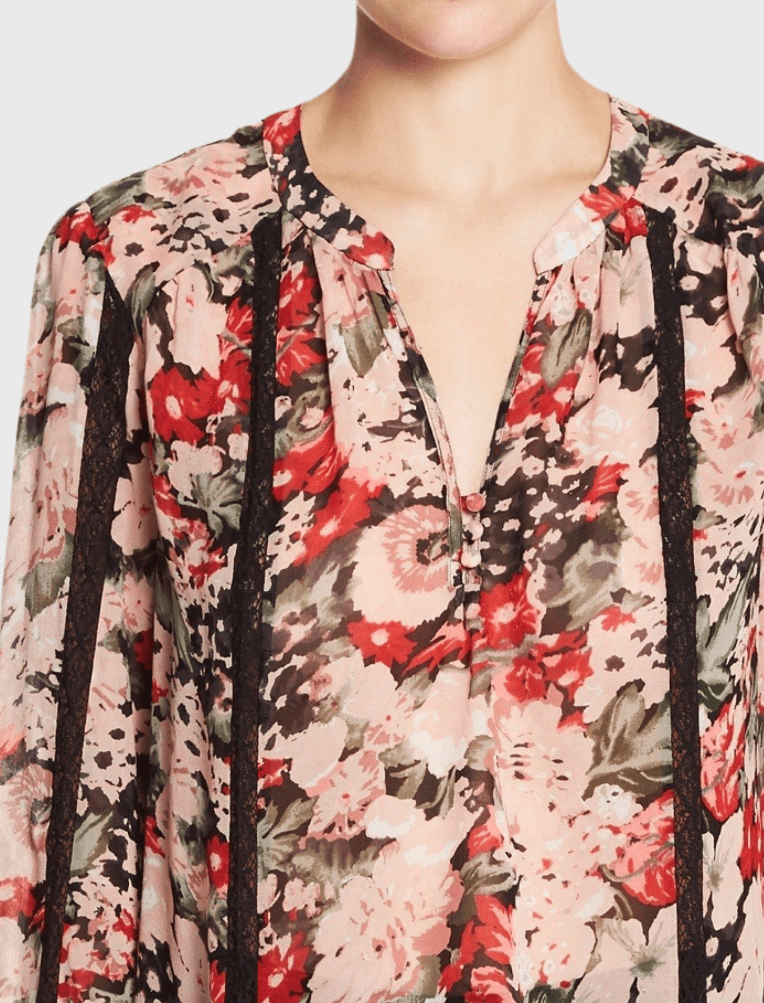 Crafted from an all over floral printed silk georgette, this ultra lightweight top by Joie features bracelet length sleeves, a slit v neck and contrast black lace inserts. Team this piece with your favourite skirt for an easy going summery look you'll want to wear all week long.