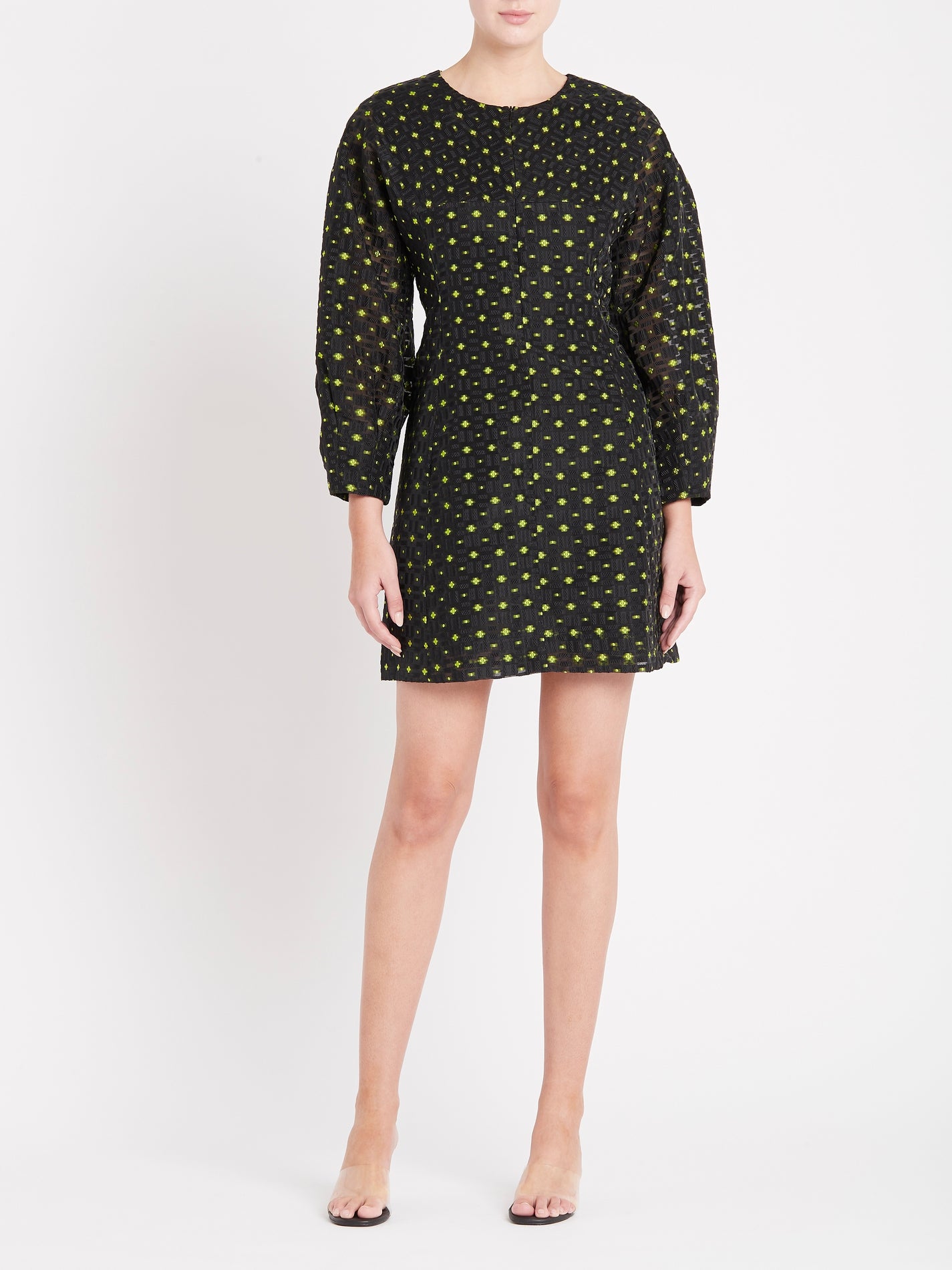 The Baum Und Pferdgarten Amina Dress in Black Star is made from 56 % Polyester, 44% Polyamide with a 100% Recycled Polyester lining