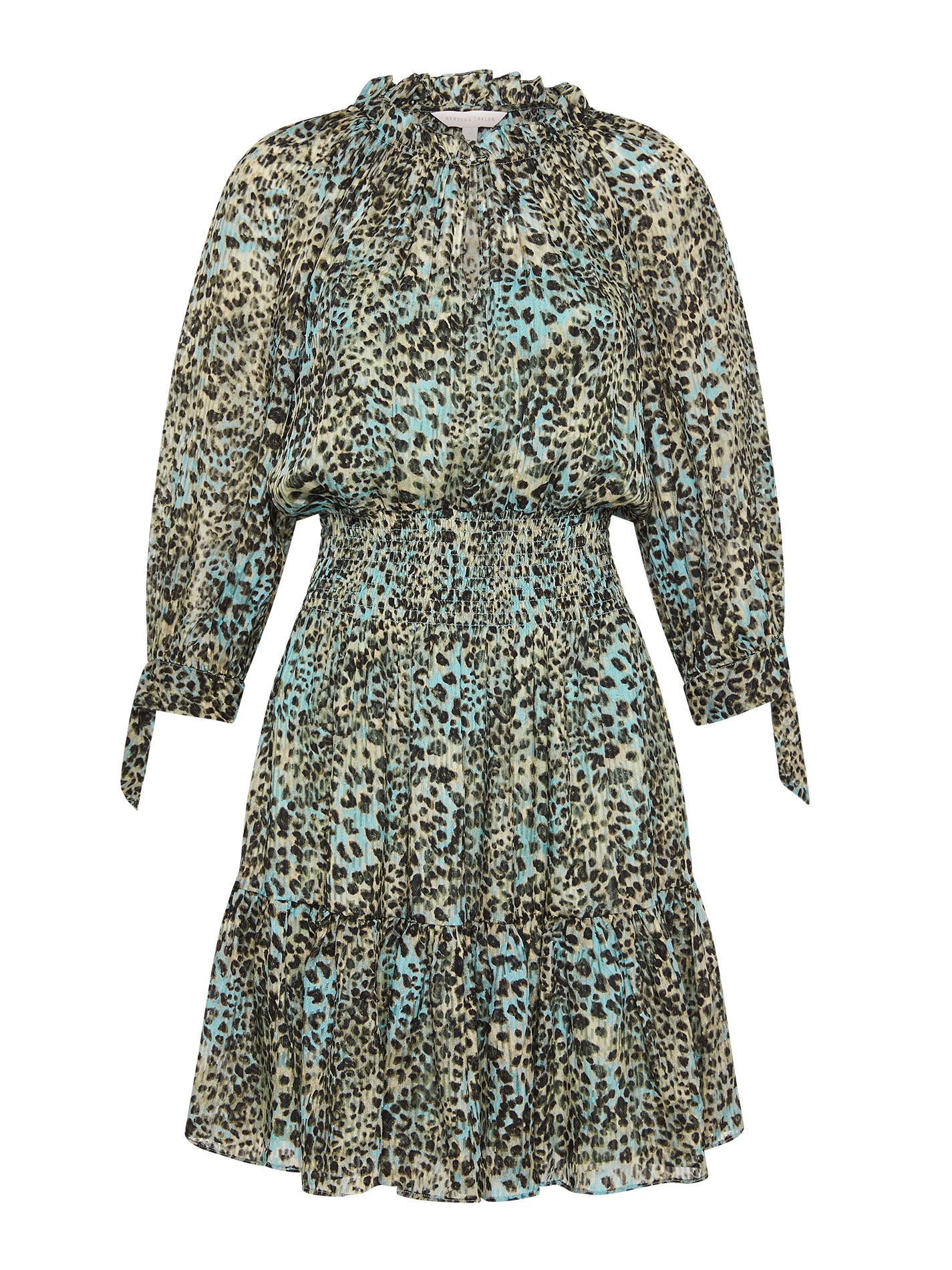 The Rebecca Taylor Lynx Silk Burnout Dress in Light Sage Combo fits true to size