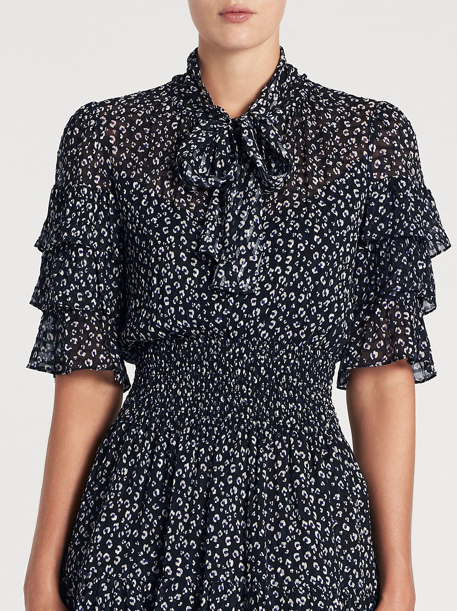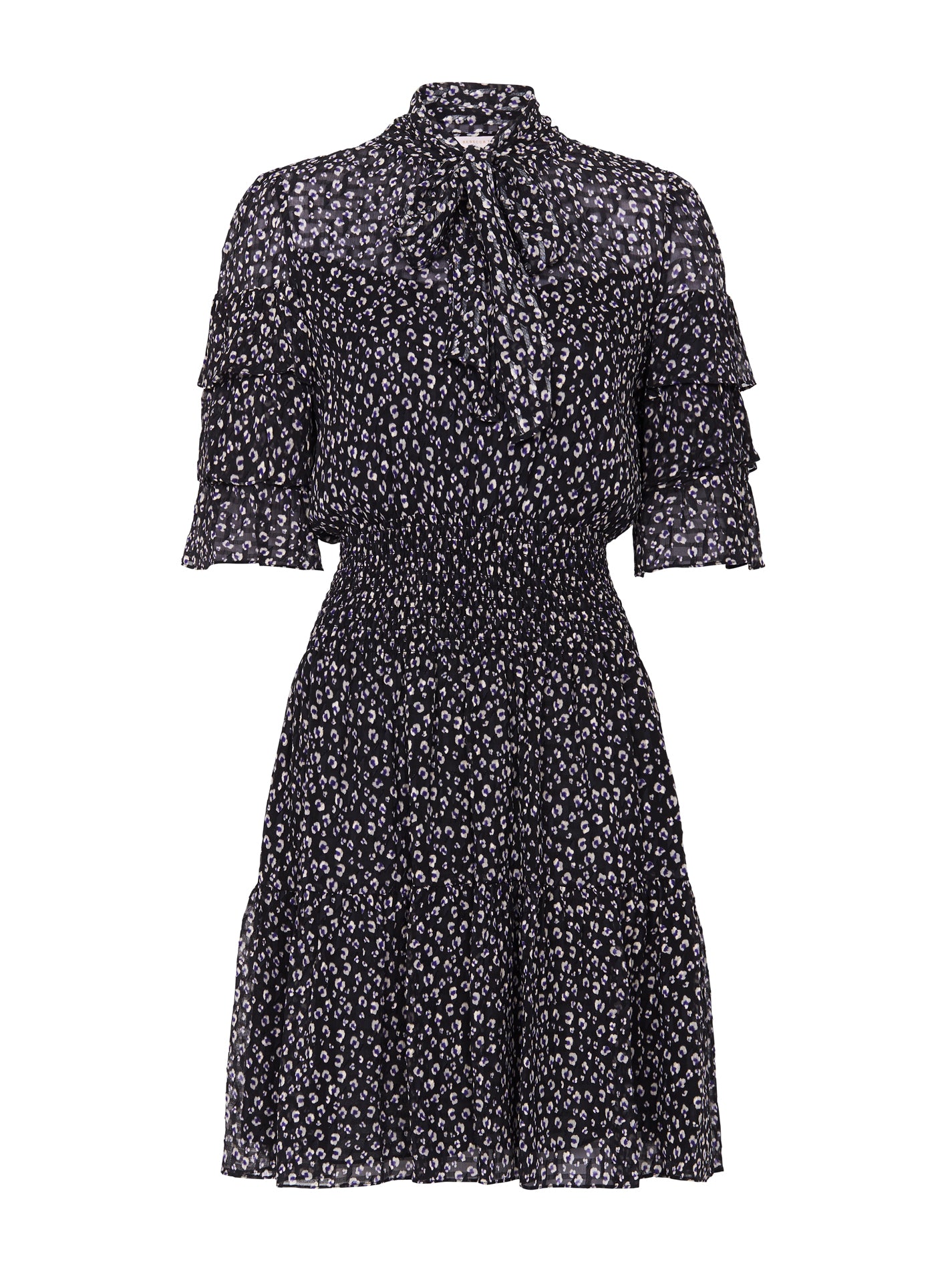 Spark the romance in the Short Sleeve Mini Cheetah Dress carefully constructed by Rebecca Taylor. Made using a soft silk material and featuring short sleeves, a mini hemline and a soft cheetah print, the Mini Cheetah Dress by Rebecca Taylor is sure to leave you feeling fierce and feminine.
