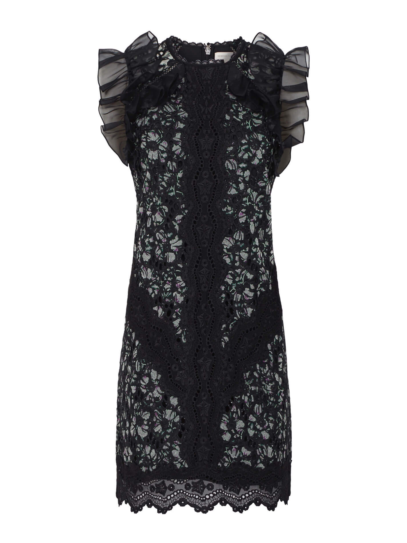 For the perfect date night dress that is both romantic and feminine look no further than the Rebecca Taylor Sleeveless Mini Floral Embroidery Dress. Constructed from a floral printed silk that has been combined with a stunning black embroidery this mini dress features sculptural chiffon ruffles, centre back zip, a round neckline and embroidered trims designed to have the look and feel of lace.