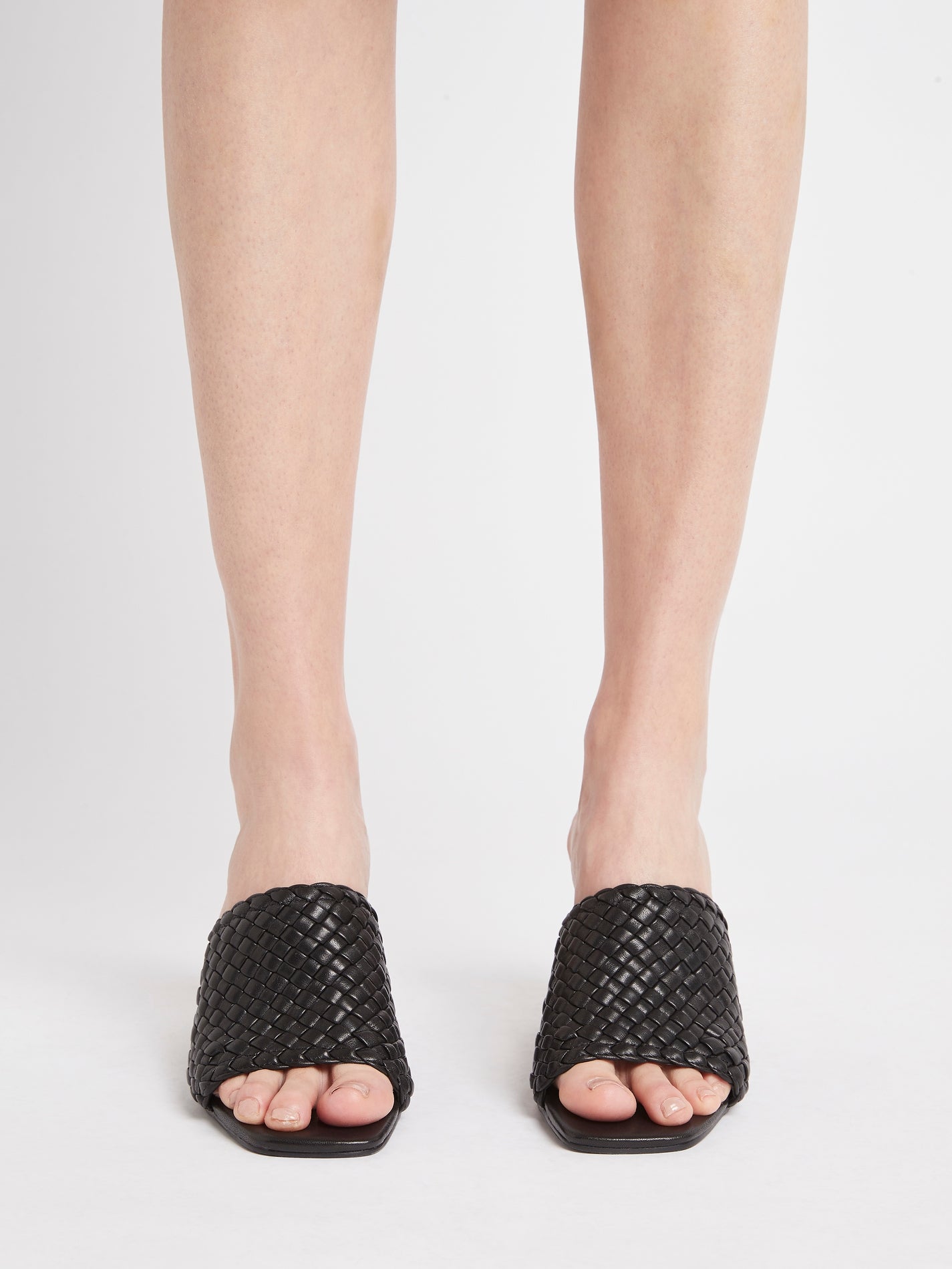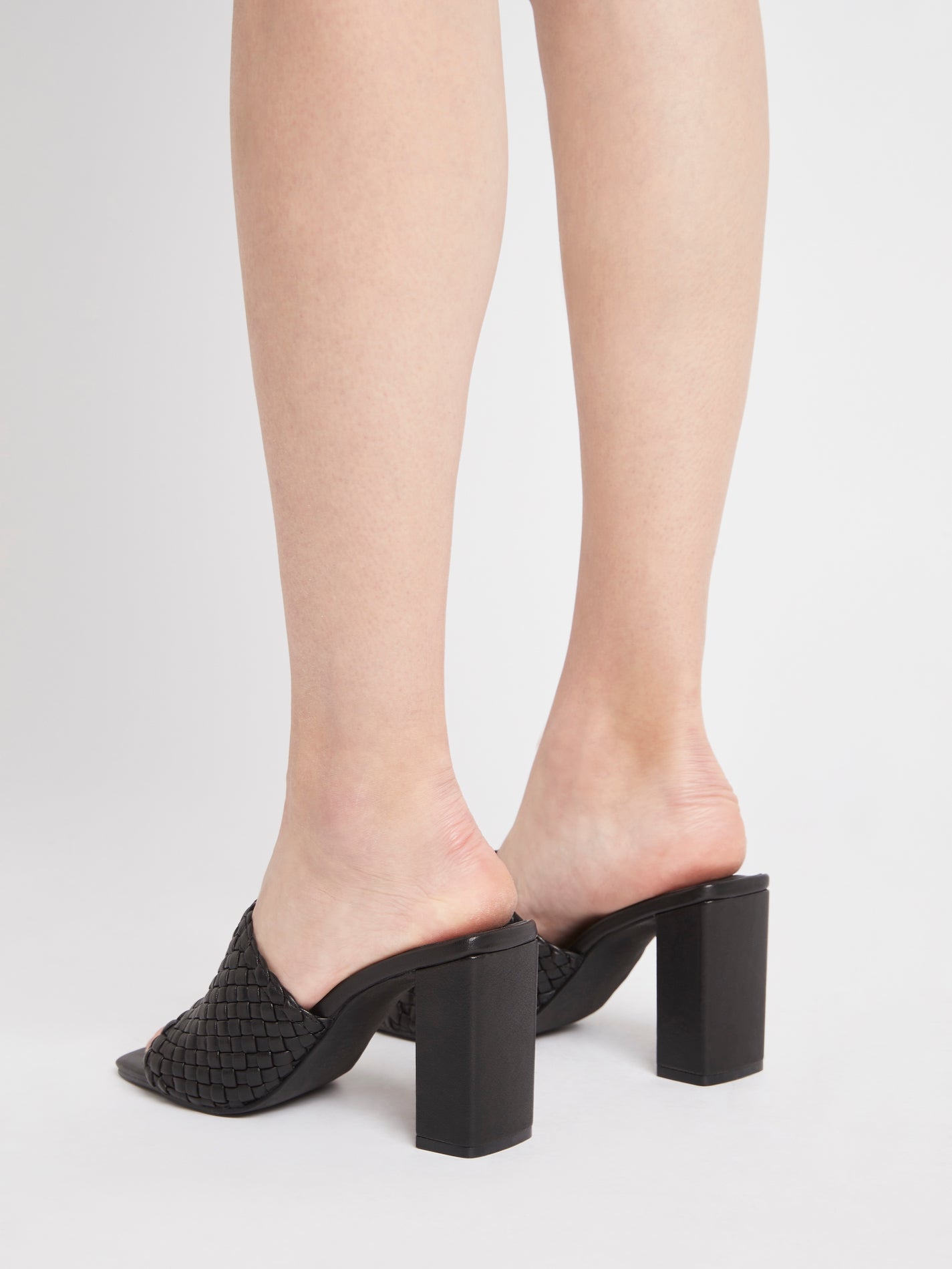 The Sol Sana Monroe Heel in Black elevates the classic open back mule shape with intricate basket weave detail and a thick block heel. Made from a soft Black leather and finished with a slightly squared toe sole, the Monroe style refines your most versatile summer heel.