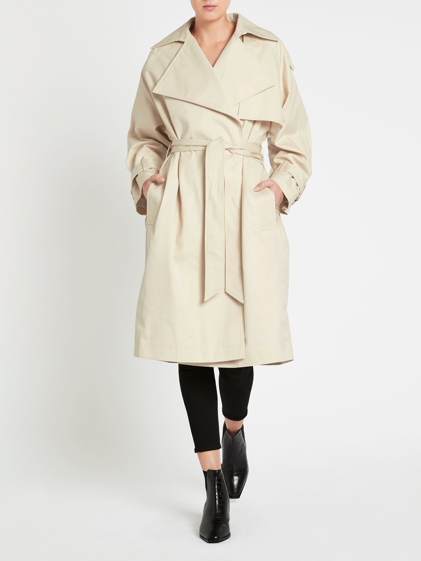 Add some mystery to your life with the IRO Mezouls Trench in Beige. The relaxed silhouette is given shape with belt detail at the waist and cuffs, while side pockets offer functionality. Add a functional-yet-stylish hat and you can be your very own Carmen Sandiego.