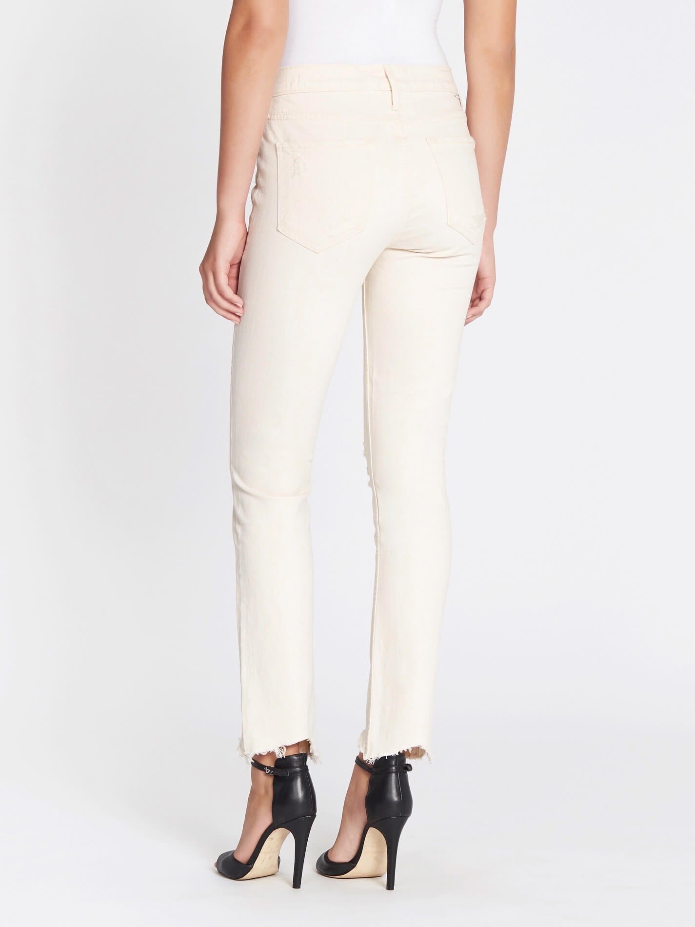 The classic white jean has been distressed and chewed up by Mother to create the perfect off-duty must have. Constructed from a cotton blend fabric these mid-rise, straight leg jeans feature a zip fly, single button closure, classic side and back pockets, ripped details and a chewed up hem for a cool girl crop finish.