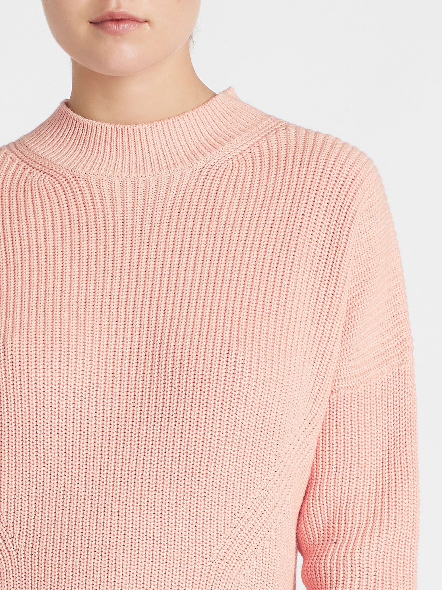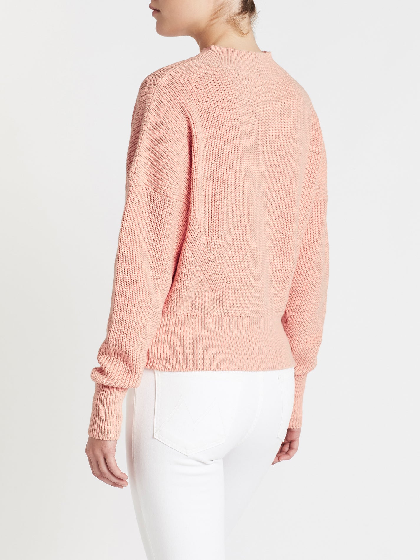 The Frame Denim Moving Rib Crew in Vintage Peony is made from 95% Cotton 5% Cashmere